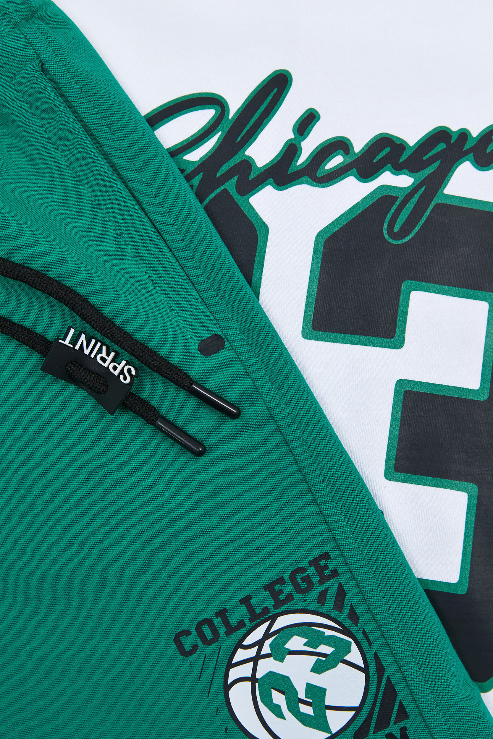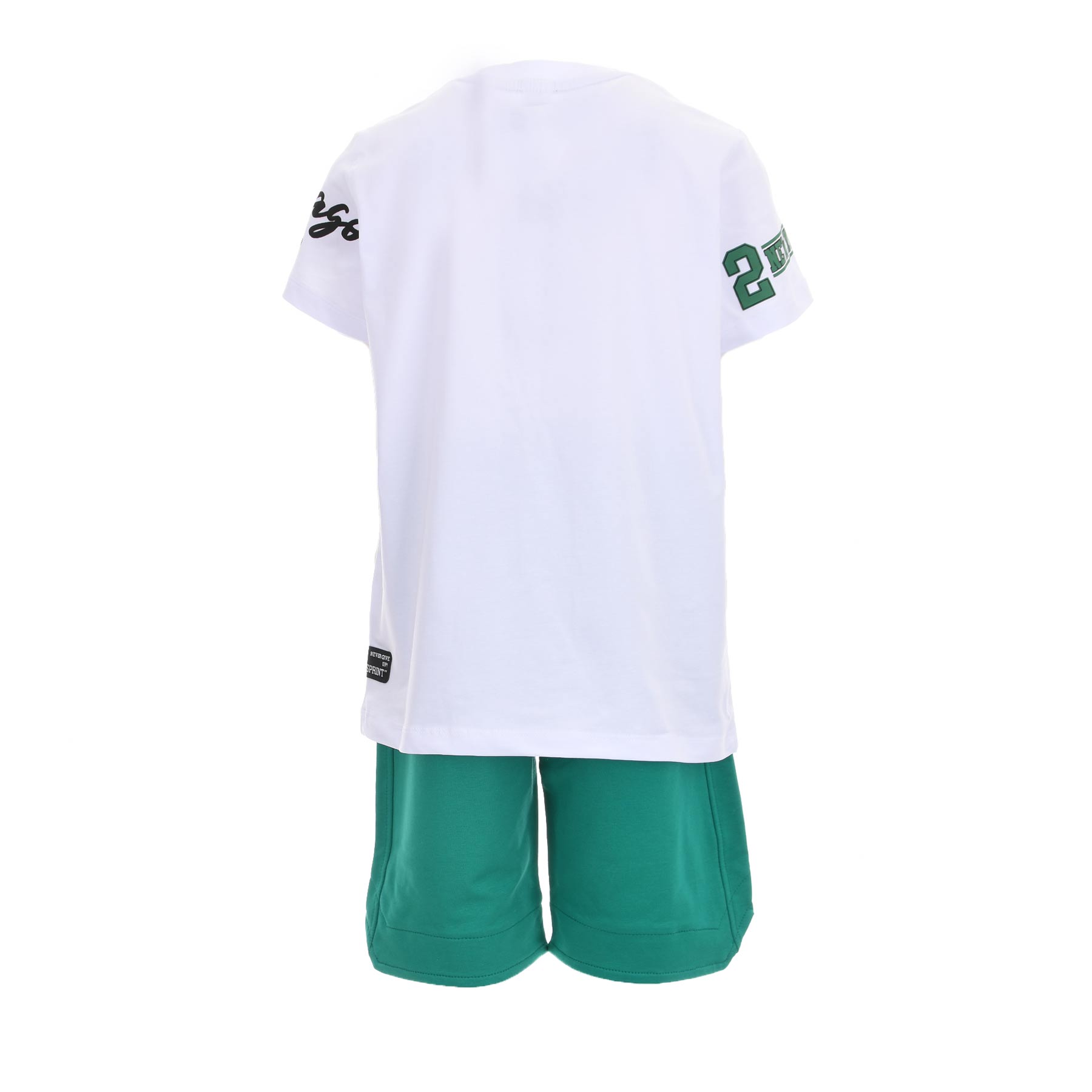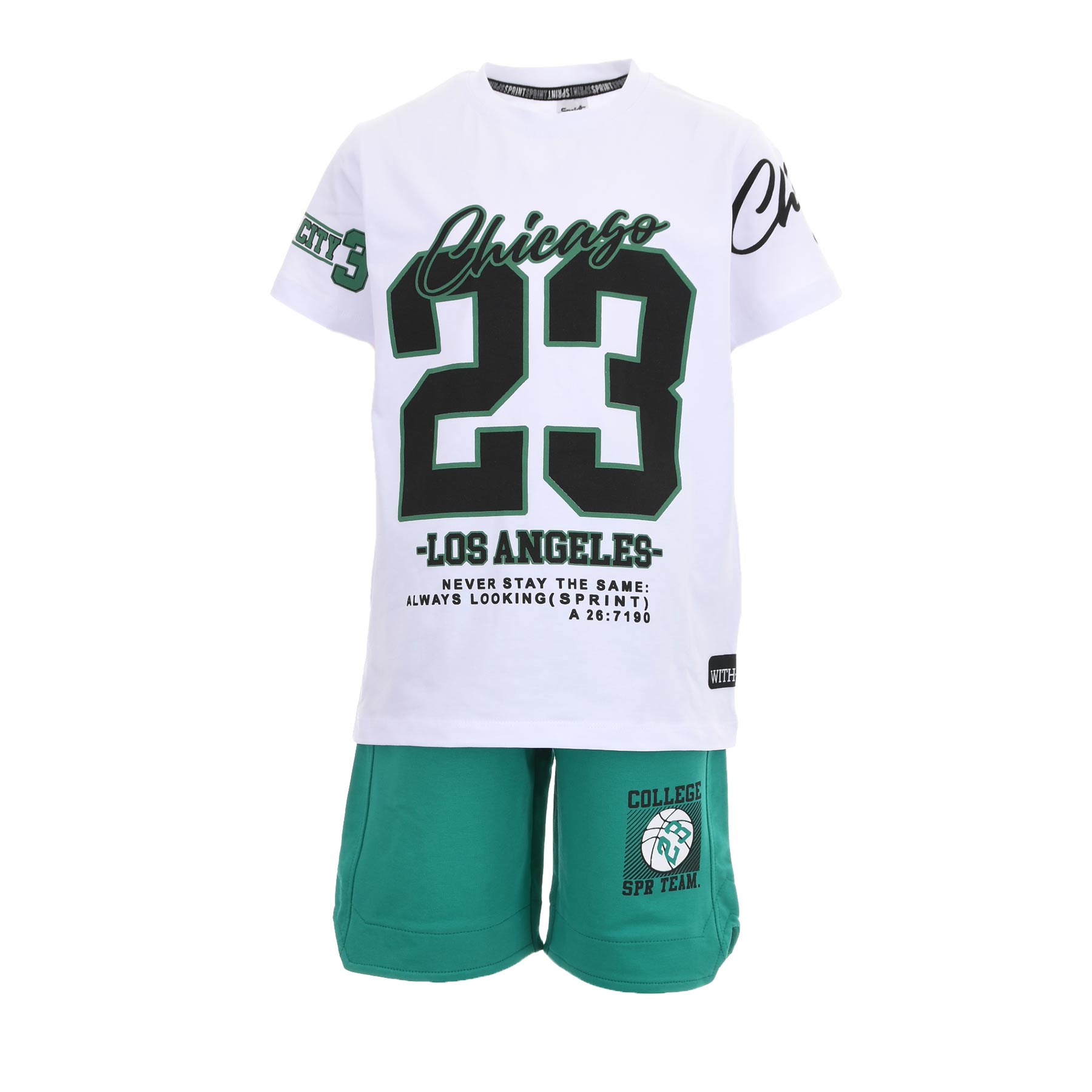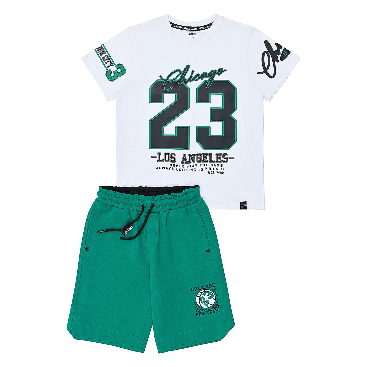 Το παιδικό σετ αγοριού Sprint σε λευκό και πράσινο συνδυάζει αθλητικό χαρακτήρα με μοντέρνο college ύφος. Η μπλούζα με το εντυπωσιακό 23 και τα varsity-inspired prints δίνει δυναμικό στυλ, ενώ η πράσινη βερμούδα ολοκληρώνει το look με sporty διάθεση.Κατασκευασμένο από μαλακό και διαπνέον ύφασμα, προσφέρει άνεση όλη μέρα και αντοχή στη συχνή χρήση ιδανικό για δραστήρια αγόρια.