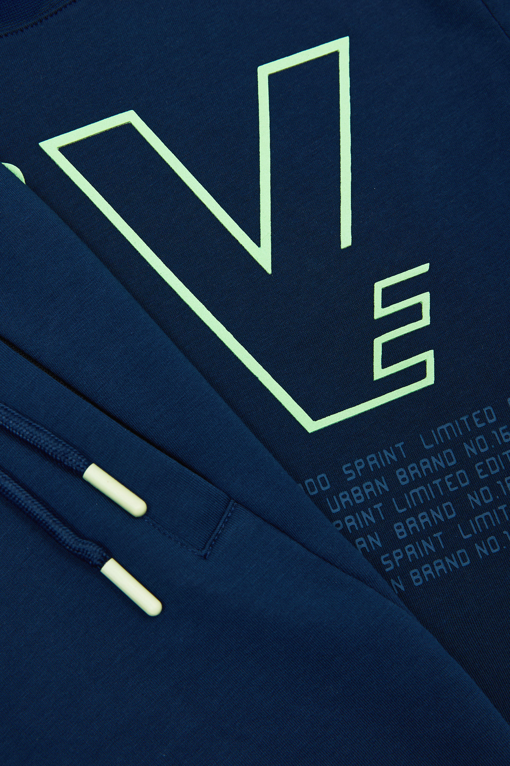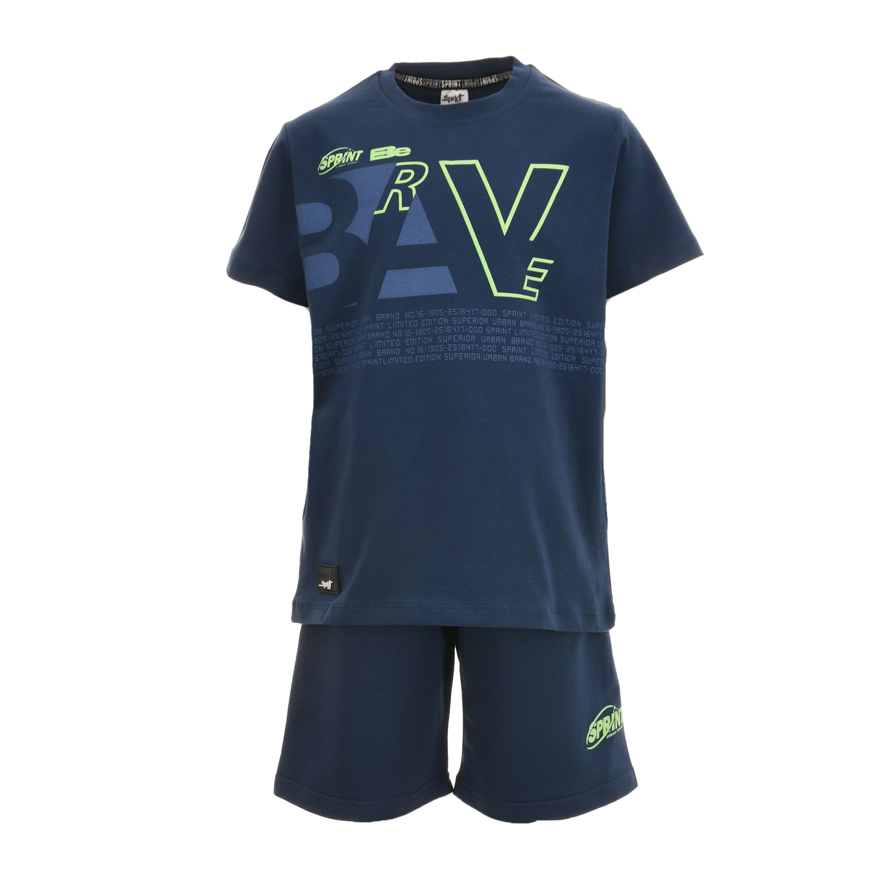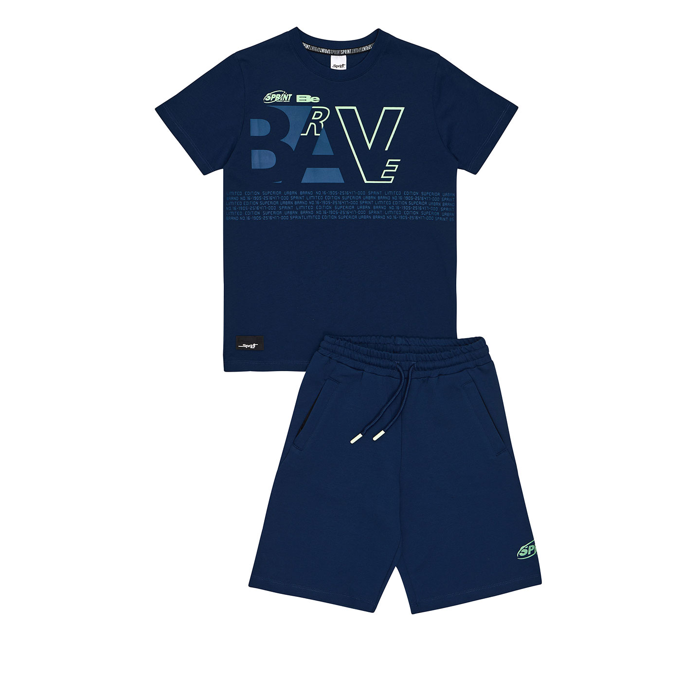 Αναβαθμίστε το καθημερινό ντύσιμο του μικρού σας με το παιδικό σετ αγοριού Sprint σε διαχρονικό μπλε μαρέν. Ένα σύγχρονο, αθλητικό σύνολο που συνδυάζει στυλ, άνεση και ανθεκτικότητα, ιδανικό για δραστήρια αγόρια που θέλουν ελευθερία κινήσεων όλη μέρα.Το μοντέρνο τύπωμα στη μπλούζα δίνει δυναμικό χαρακτήρα στο outfit, ενώ η βερμούδα με ελαστική μέση εξασφαλίζει τέλεια εφαρμογή χωρίς πίεση. Η απαλή υφή του υφάσματος το καθιστά ευχάριστο στη χρήση, ακόμα και τις πιο ζεστές ημέρες.