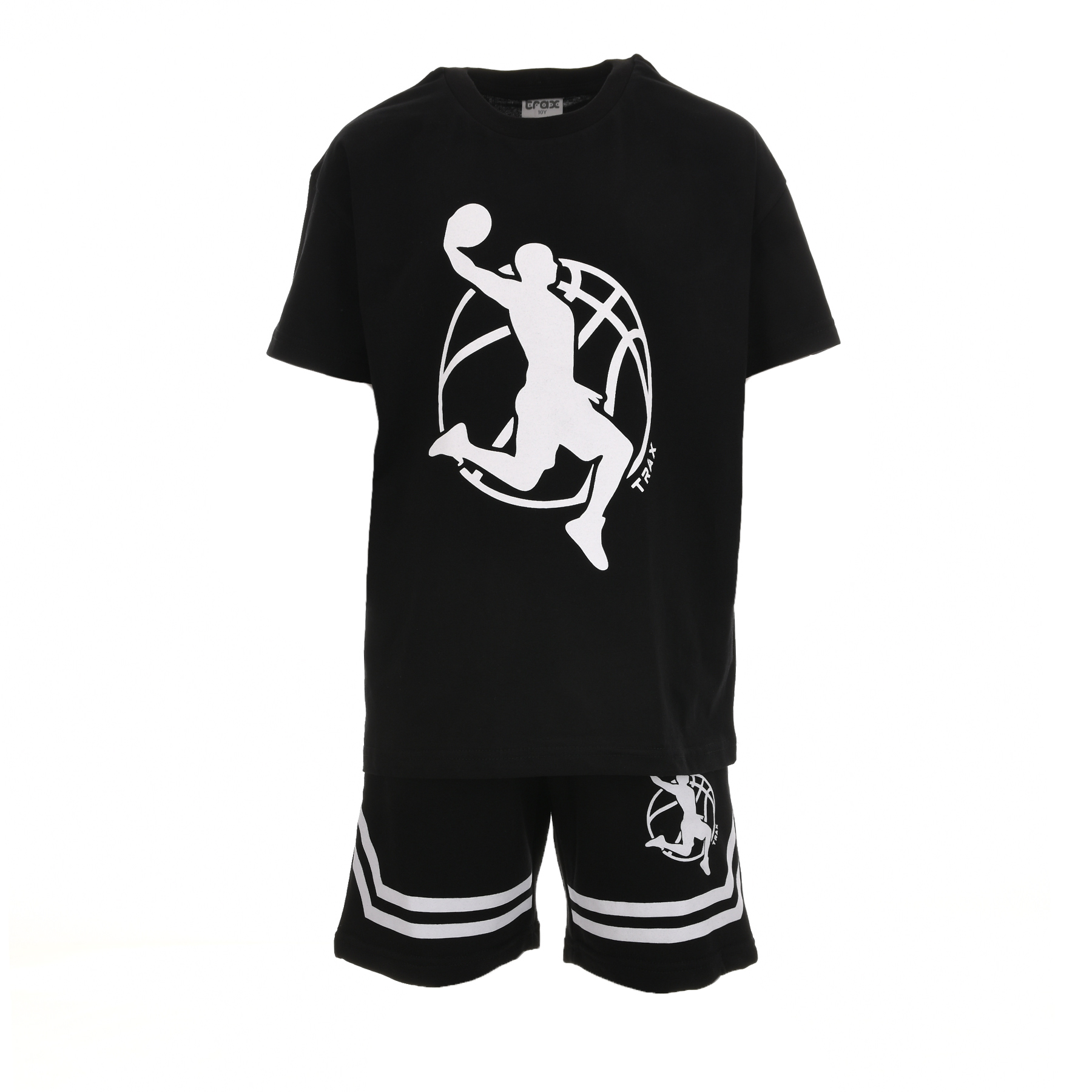 Το παιδικό σετ για αγόρια Trax σε μαύρο χρώμα είναι εμπνευσμένο από το basketball style και προσφέρει δυναμικό look για μικρούς fans του sport. Με εντυπωσιακό print μπασκετμπολίστα, το σετ αποπνέει ενέργεια και αυτοπεποίθηση.