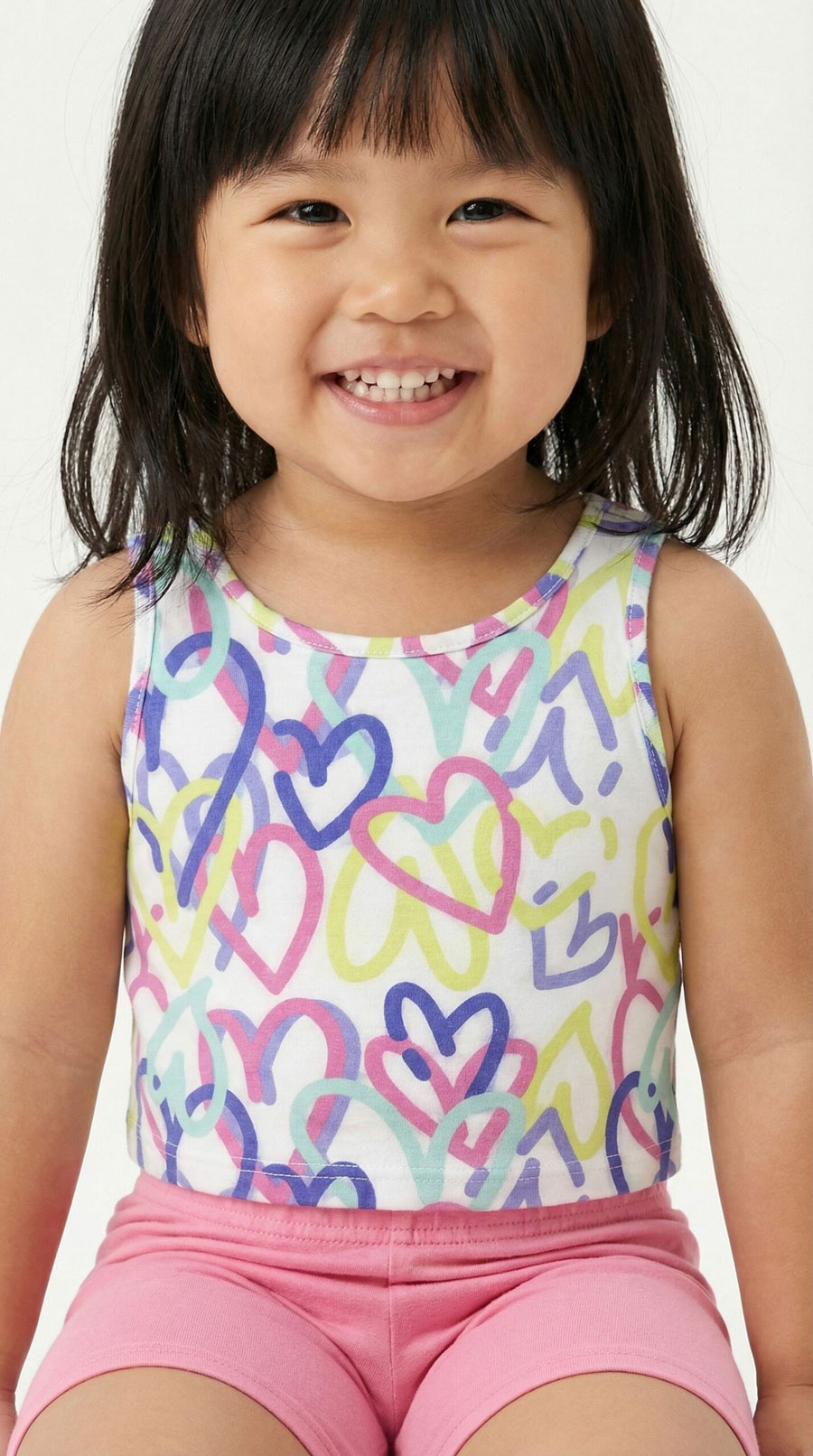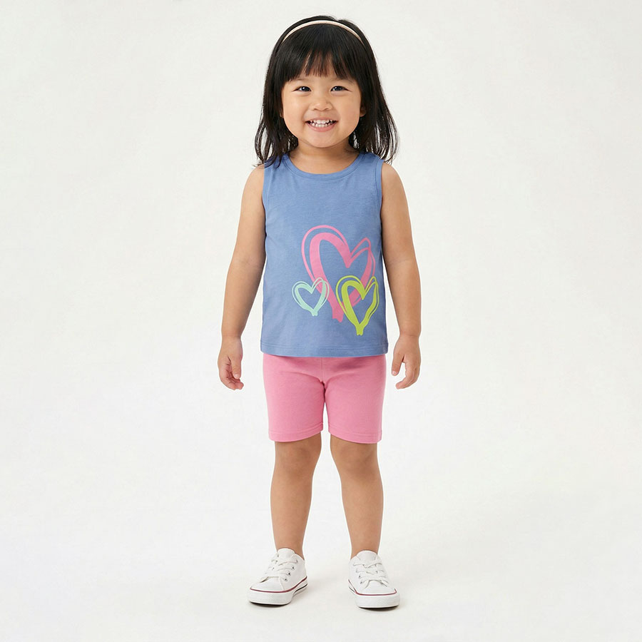 Με απαλά και ελαστικά υφάσματα, εξασφαλίζει άνεση και ελευθερία κινήσεων όλη μέρα. Το παιχνιδιάρικο σχέδιο με καρδιές δίνει girly χαρακτήρα και κάνει το σύνολο ιδανικό για μικρές fashionistas.