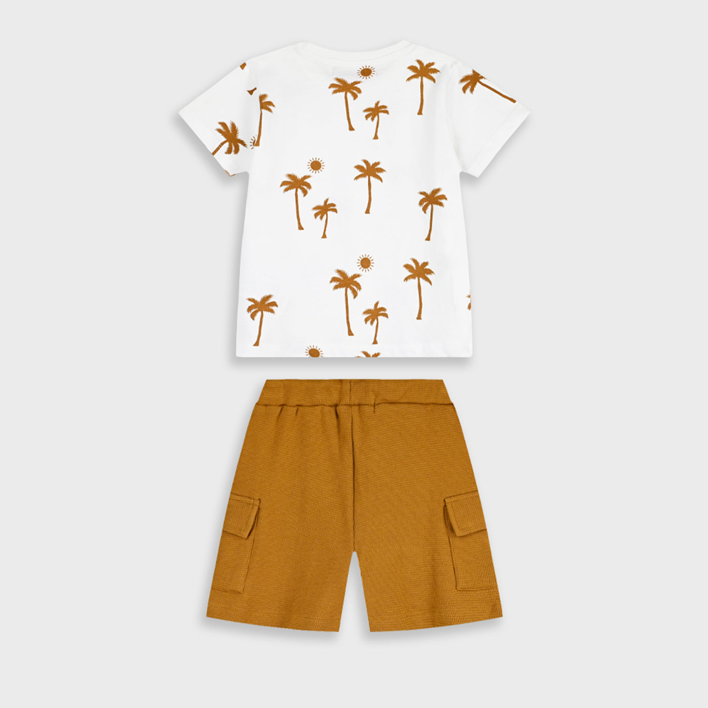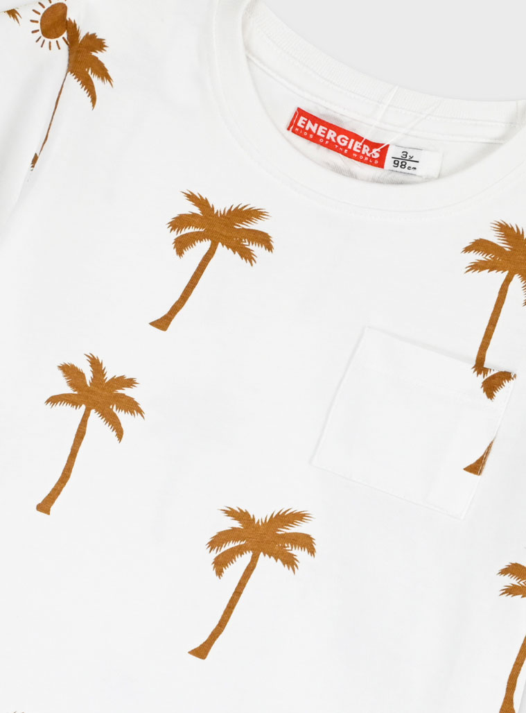 Καλοκαιρινό, άνετο και με τροπική διάθεση, το παιδικό σετ Energiers εκρού καφέ είναι ιδανικό για καθημερινές εμφανίσεις με στυλ. Ένα σύνολο που συνδυάζει μοντέρνο design και πρακτικότητα, για μικρούς εξερευνητές που αγαπούν το παιχνίδι.Η εκρού κοντομάνικη μπλούζα διαθέτει all-over τύπωμα με φοίνικες και ήλιους σε καφέ αποχρώσεις, χαρίζοντας καλοκαιρινό χαρακτήρα. Η καφέ βερμούδα cargo συμπληρώνει ιδανικά το outfit, με ελαστική μέση και ρυθμιζόμενο κορδόνι για άνετη εφαρμογή, καθώς και πρακτικές πλαϊνές τσέπες με καπάκι.Ιδανικό για βόλτες, διακοπές και καθημερινές δραστηριότητες.