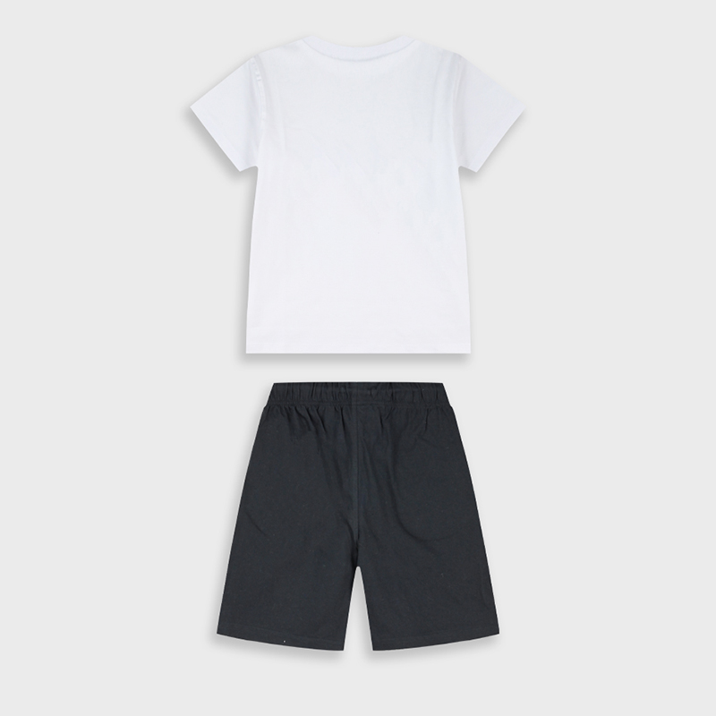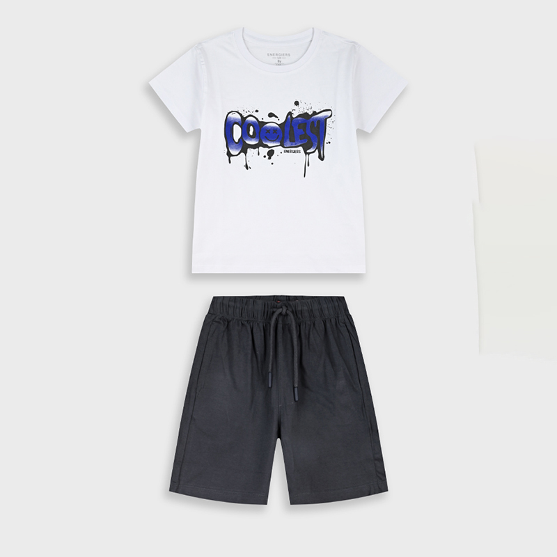 Ανανεώστε την καλοκαιρινή γκαρνταρόμπα του μικρού σας με αυτό το μοντέρνο παιδικό σετ Energiers σε λευκό-μαύρο συνδυασμό, ιδανικό για άνεση, στυλ και καθημερινές δραστηριότητες. Το σετ αποτελείται από κοντομάνικο t-shirt με εντυπωσιακό graffiti τύπωμα COOLSY στο μπροστινό μέρος και βερμούδα σε κλασικό μαύρο χρώμα, δημιουργώντας ένα δυναμικό και urban σύνολο που ξεχωρίζει.Το μπλουζάκι είναι κατασκευασμένο από απαλό βαμβακερό ύφασμα που επιτρέπει στο δέρμα να αναπνέει, προσφέροντας άνετη εφαρμογή καθ όλη τη διάρκεια της ημέρας. Η βερμούδα διαθέτει ελαστική μέση με ρυθμιζόμενο κορδόνι για σταθερή και άνετη εφαρμογή, ιδανική για παιχνίδι, βόλτες ή καλοκαιρινές εξορμήσεις.