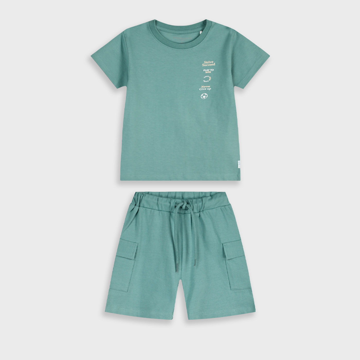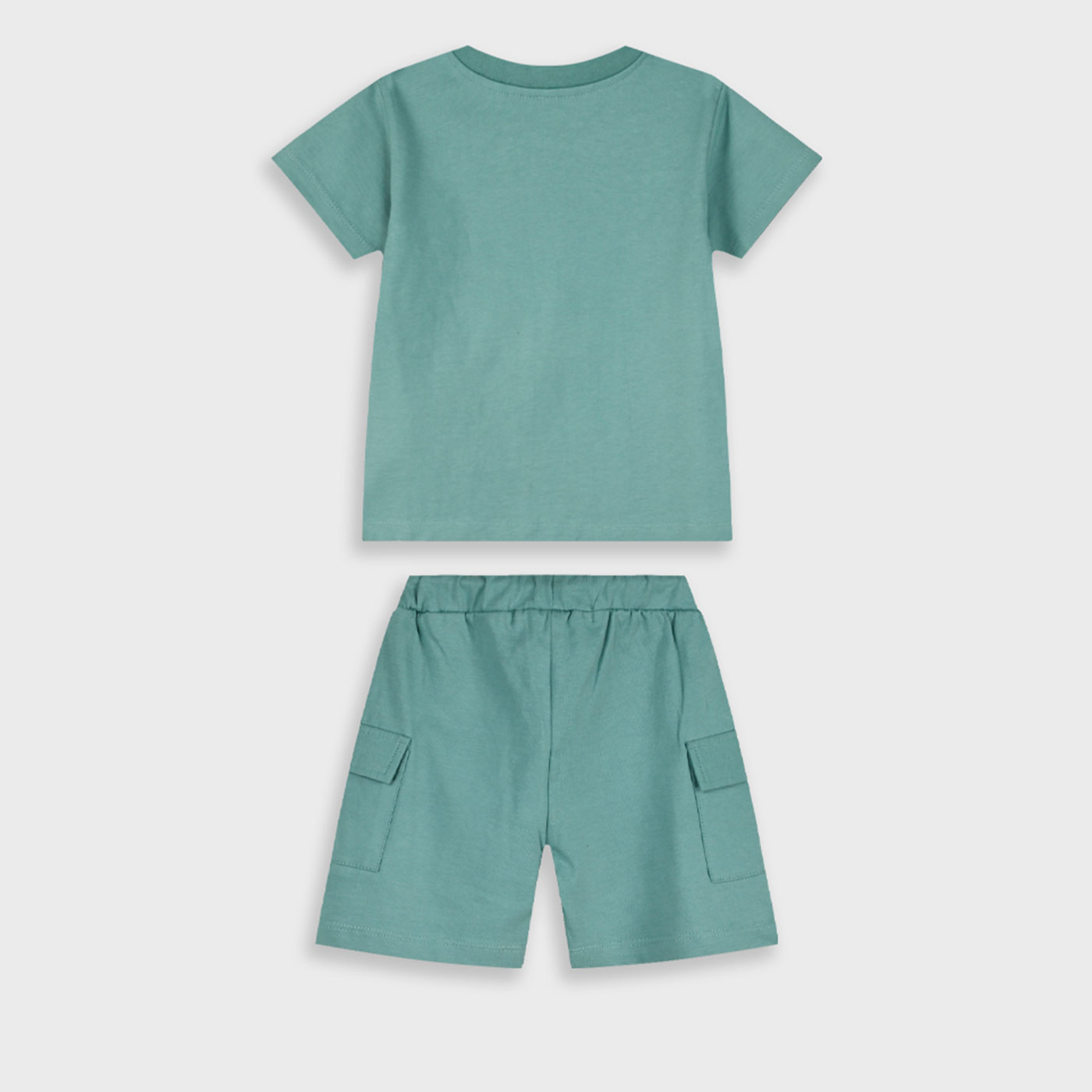 Ανανεώστε την καλοκαιρινή γκαρνταρόμπα του μικρού σας με το παιδικό σετ Energiers σε μοντέρνα πράσινη απόχρωση. Ένα άνετο και πρακτικό σύνολο που συνδυάζει στυλ και λειτουργικότητα, ιδανικό για το σχολείο, τη βόλτα και το παιχνίδι.Το σετ αποτελείται από κοντομάνικη μπλούζα σε πράσινο τόνο με minimal τύπωμα στο στήθος και βερμούδα στο ίδιο χρώμα, δημιουργώντας ένα ολοκληρωμένο και αρμονικό outfit. Η βερμούδα διαθέτει ελαστική μέση με ρυθμιζόμενο κορδόνι για τέλεια εφαρμογή και πλαϊνές cargo τσέπες που προσφέρουν πρακτικότητα και casual χαρακτήρα.Κατασκευασμένο από μαλακό βαμβακερό ύφασμα, προσφέρει άνεση, διαπνοή και ελευθερία κινήσεων όλη μέρα. Είναι η ιδανική επιλογή για δραστήρια αγόρια που θέλουν άνεση χωρίς να χάνουν το στυλ τους.