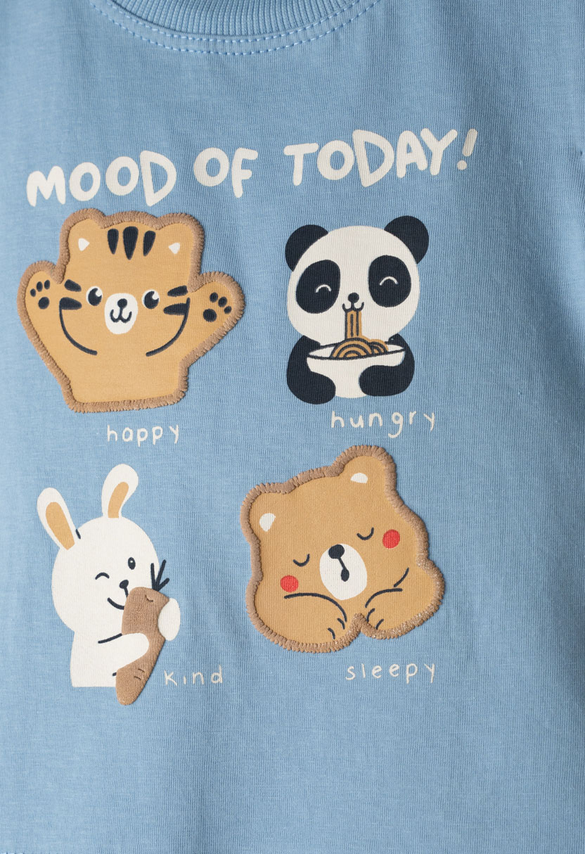 Ένα δροσερό και παιχνιδιάρικο παιδικό σετ 3 τεμαχίων για αγόρια από τη Hashtag, ιδανικό για άνετες καλοκαιρινές εμφανίσεις. Το σετ περιλαμβάνει κοντομάνικη μπλούζα, ριγέ βερμούδα και ασορτί καπέλο, προσφέροντας ένα ολοκληρωμένο outfit για κάθε καλοκαιρινή δραστηριότητα.Η σιέλ μπλούζα ξεχωρίζει με χαριτωμένο τύπωμα ζωάκια και το μήνυμα Mood of today, χαρίζοντας fun διάθεση στο ντύσιμο. Διαθέτει κουμπάκια στον ώμο για εύκολη εφαρμογή. Η μπεζ ριγέ βερμούδα με ελαστική μέση προσφέρει άνεση και ελευθερία κινήσεων. Το ριγέ καπέλο προστατεύει από τον ήλιο και συμπληρώνει ιδανικά το σύνολο.Κατασκευασμένο από μαλακά και φιλικά προς το παιδικό δέρμα υφάσματα, είναι ιδανικό για βόλτες, διακοπές και καθημερινή χρήση.