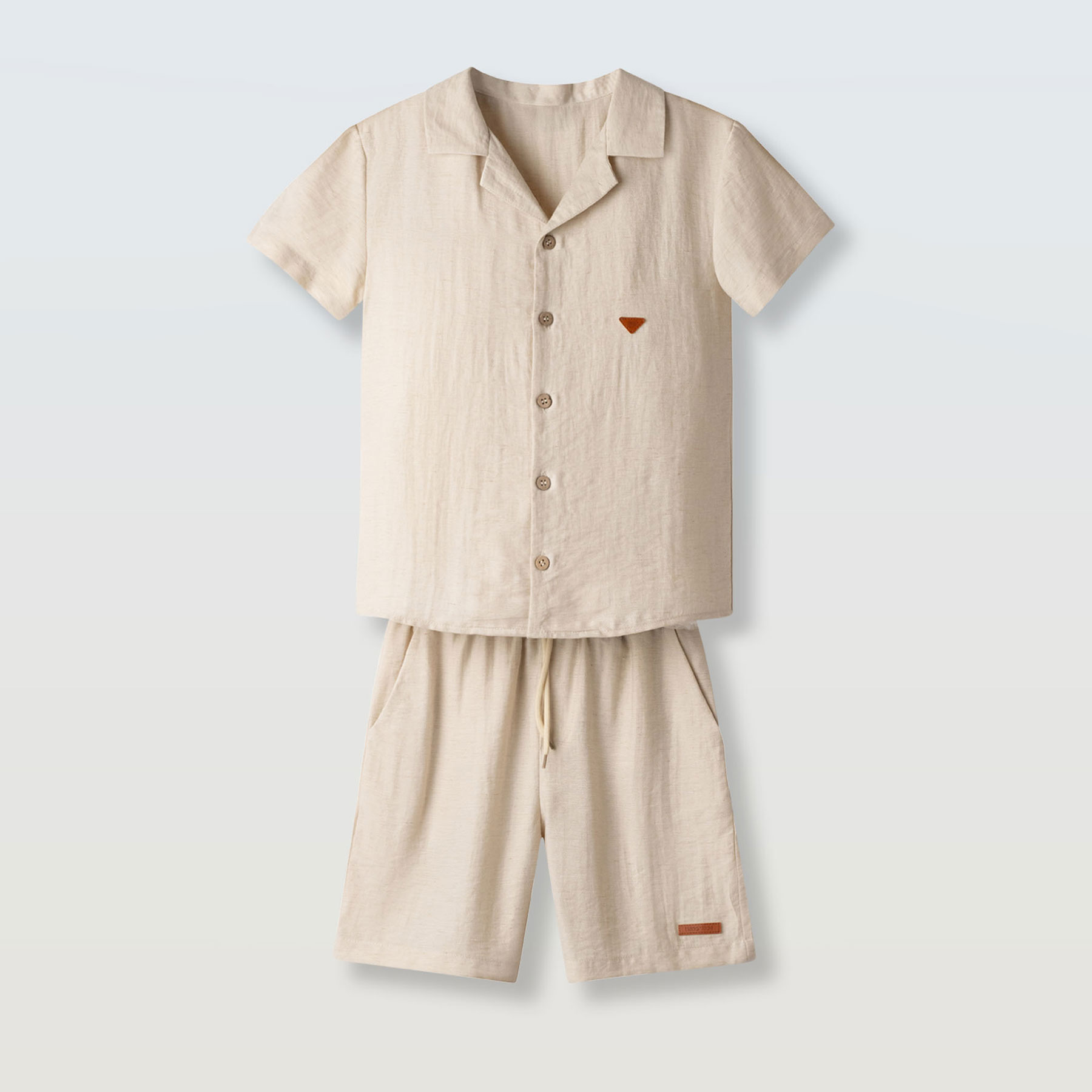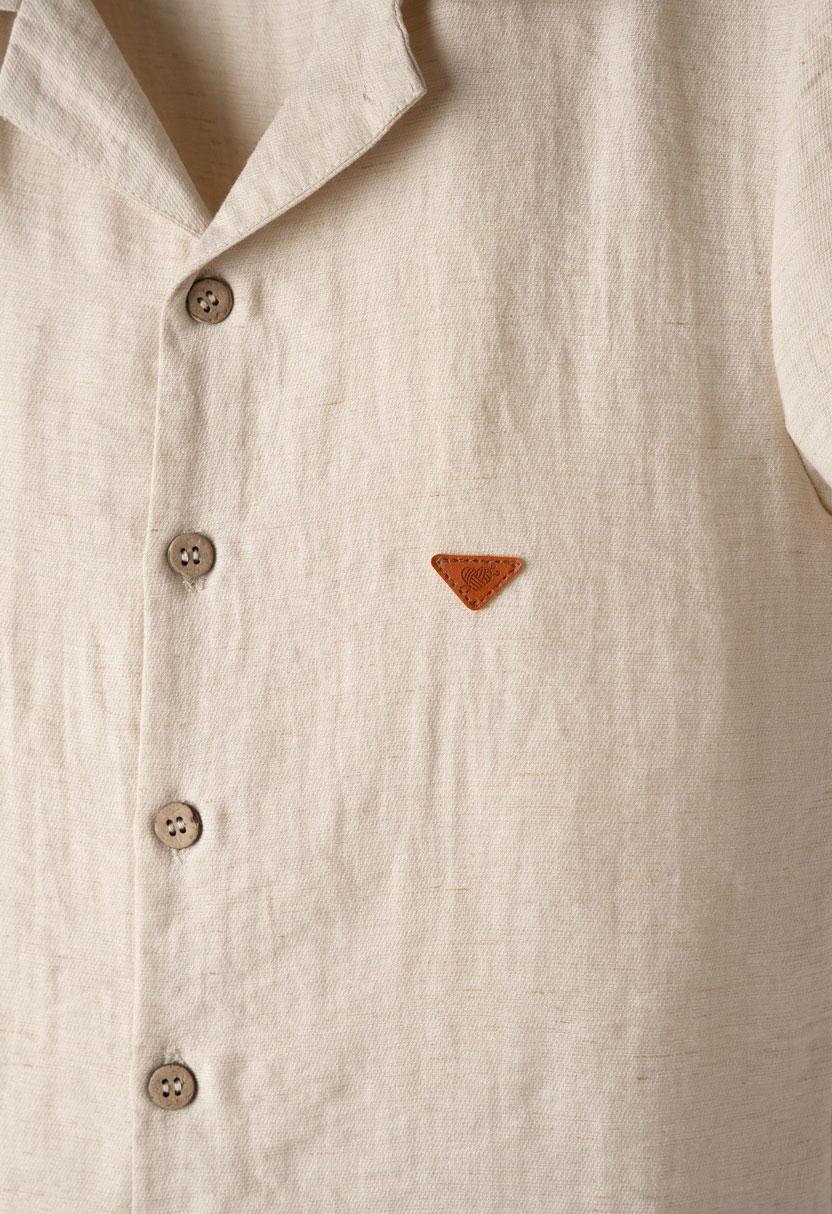 Ενα κομψό και δροσερό παιδικό σετ για αγόρια από την εταιρεία Hashtag, ιδανικό για καλοκαιρινές εμφανίσεις με στυλ και άνεση. Το σετ αποτελείται από κοντομάνικο πουκάμισο σε μπεζ απόχρωση με γιακά και κουμπιά στο μπροστινό μέρος, χαρίζοντας ένα μοντέρνο αλλά και διαχρονικό look.