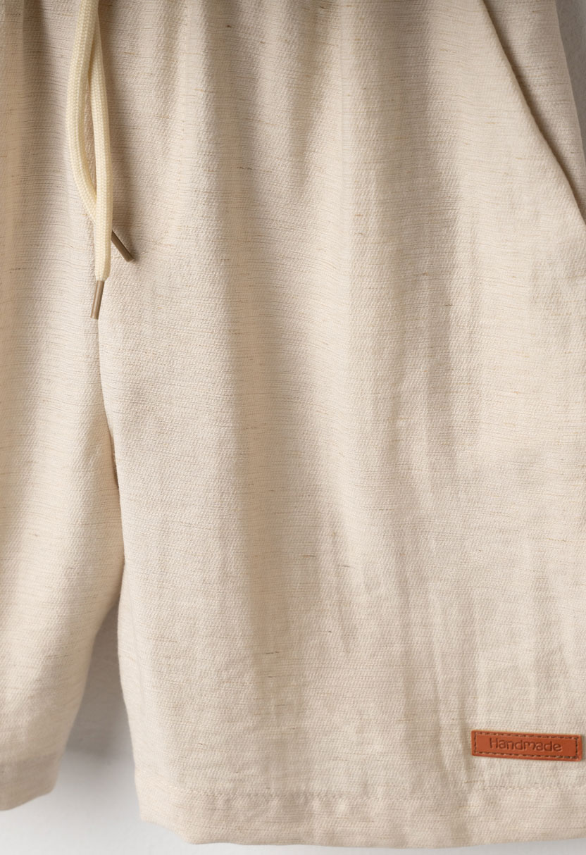 Συνδυάζεται με μπεζ βερμούδα με ελαστική μέση και κορδόνι ρύθμισης, που εξασφαλίζει άνετη εφαρμογή και ελευθερία κινήσεων. Το ελαφρύ και δροσερό ύφασμα το καθιστά ιδανικό για τις ζεστές καλοκαιρινές ημέρες, ενώ ο minimal σχεδιασμός του επιτρέπει εύκολους και κομψούς συνδυασμούς.