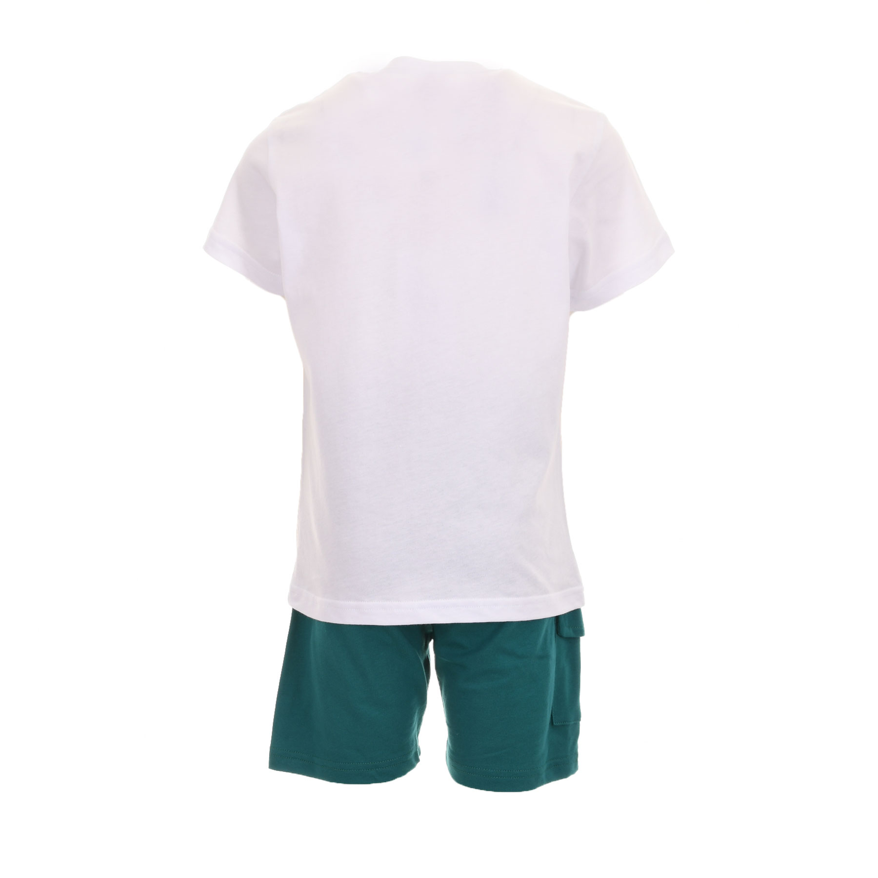 Το παιδικό σετ Joyce λευκόπετρόλ είναι ιδανικό για αγόρια που αγαπούν τη δράση και το καλοκαιρινό στυλ. Το σετ αποτελείται από κοντομάνικη μπλούζα με fun τύπωμα Ready for Vacay και άνετη βερμούδα σε πετρόλ απόχρωση, δημιουργώντας ένα μοντέρνο και δροσερό outfit για κάθε μέρα.Το παιχνιδιάρικο σχέδιο με το τζιπ, τους φοίνικες και τον ήλιο δίνει καλοκαιρινή διάθεση και κάνει το σύνολο αγαπημένη επιλογή για διακοπές, βόλτες και παιχνίδι.