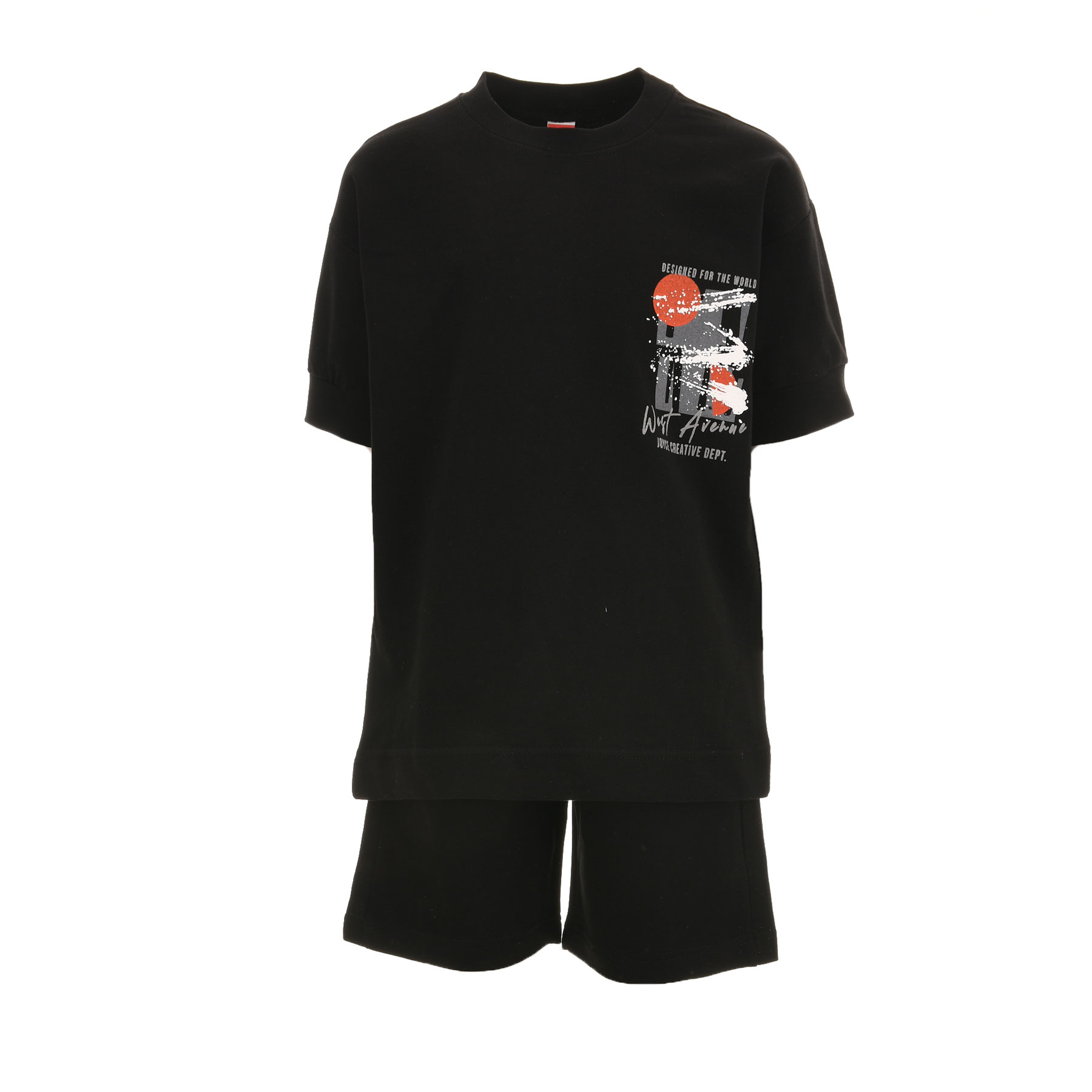 Το παιδικό σετ Joyce σε μαύρη απόχρωση είναι η ιδανική επιλογή για αγόρια που αγαπούν το άνετο και μοντέρνο ντύσιμο. Με διαχρονικό design και διαχρονικούς τόνους, προσφέρει ευελιξία στους συνδυασμούς και ταιριάζει σε κάθε περίσταση από το παιχνίδι μέχρι τη βόλτα.Η κοντομάνικη μπλούζα διαθέτει μοντέρνο print στο στήθος, ενώ η βερμούδα εξασφαλίζει ελευθερία κινήσεων όλη μέρα.