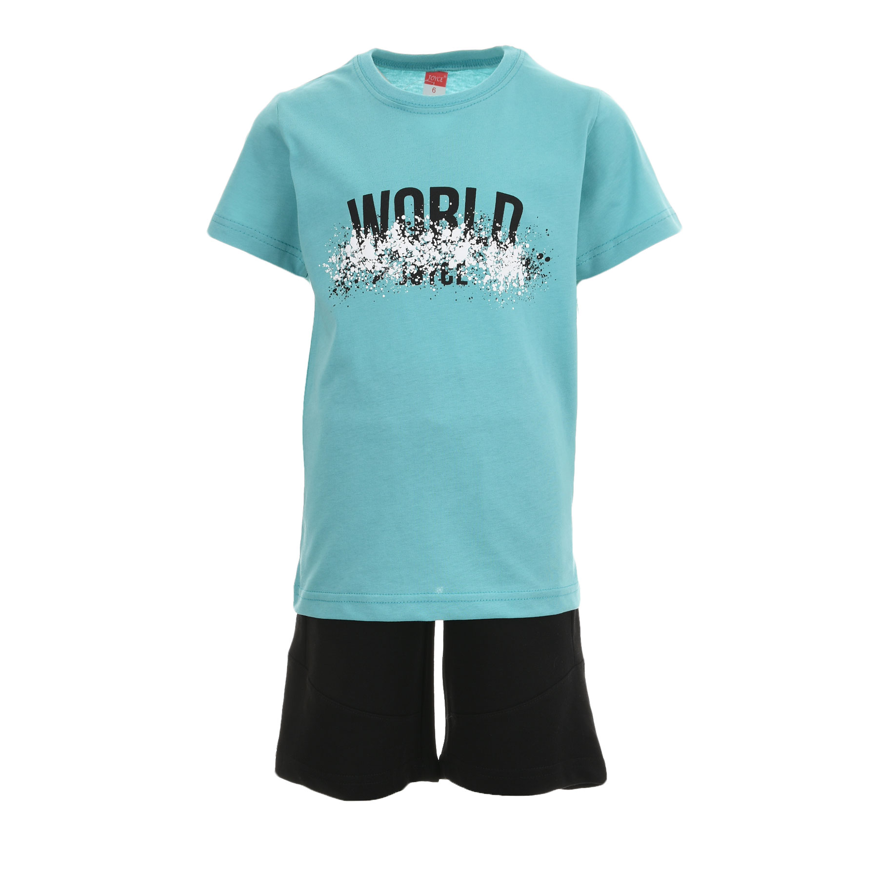 Το παιδικό σετ με βερμούδα Joyce σε μέντα και μαύρο είναι η ιδανική επιλογή για αγόρια που θέλουν άνεση και στυλ στις καθημερινές τους εμφανίσεις. Με μοντέρνο τύπωμα WORLD σε συνδυασμό με δυναμικό splatter print, προσφέρει sporty χαρακτήρα και ξεχωριστό look που ακολουθεί τις τάσεις της παιδικής μόδας.Κατασκευασμένο από μαλακό βαμβακερό ύφασμα, εξασφαλίζει δροσερή αίσθηση και ελευθερία κινήσεων σε κάθε δραστηριότητα από το παιχνίδι μέχρι τις καλοκαιρινές βόλτες.