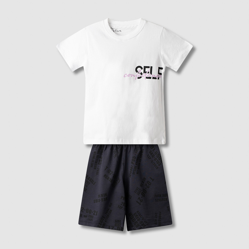 Ανανεώστε το καλοκαιρινό στυλ του μικρού σας με το παιδικό σετ Nekidswear σε λευκό και ανθρακί. Ένα μοντέρνο, άνετο και ευκολοφόρετο σύνολο που συνδυάζει minimal αισθητική με σύγχρονες λεπτομέρειες, ιδανικό για καθημερινές εμφανίσεις.Το σετ αποτελείται από λευκή κοντομάνικη μπλούζα με διακριτικό τύπωμα στο στήθος και ανθρακί βερμούδα με μοντέρνο all-over print. Η άνετη γραμμή και το μαλακό ύφασμα προσφέρουν ελευθερία κινήσεων, καθιστώντας το ιδανικό για παιχνίδι, βόλτες και καλοκαιρινές δραστηριότητες.