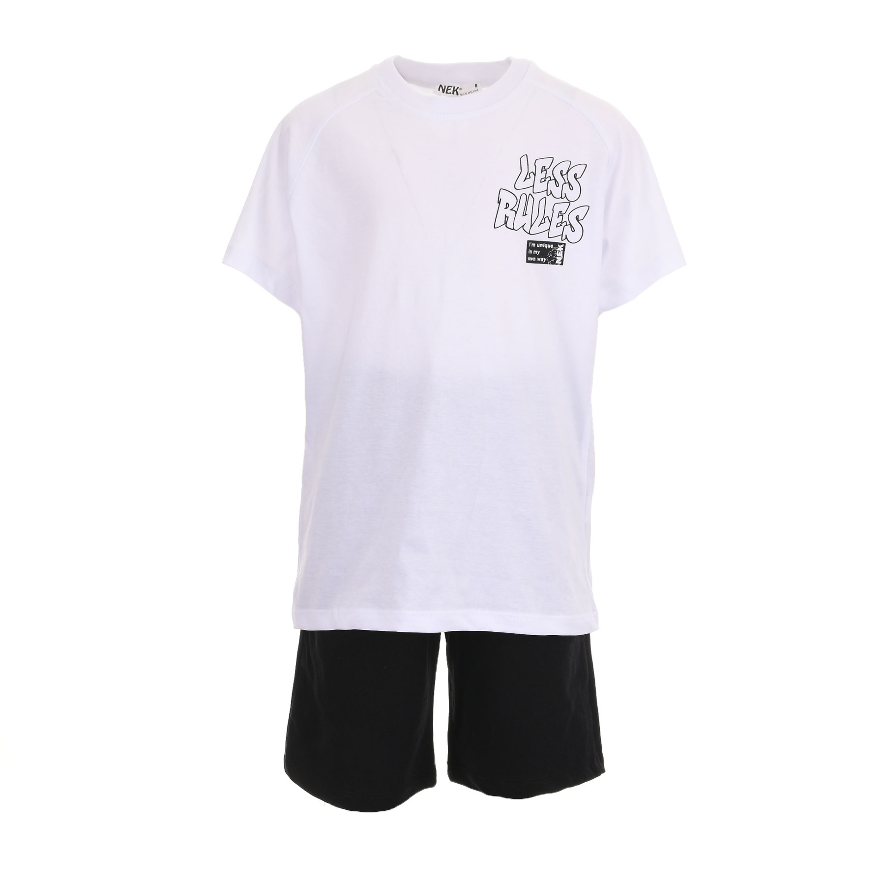 Διαχρονικό, minimal και πάντα στη μόδα, αυτό το παιδικό σετ με βερμούδα για αγόρια από τη Nekidswear σε λευκό-μαύρο συνδυασμό αποτελεί ιδανική επιλογή για κάθε περίσταση.