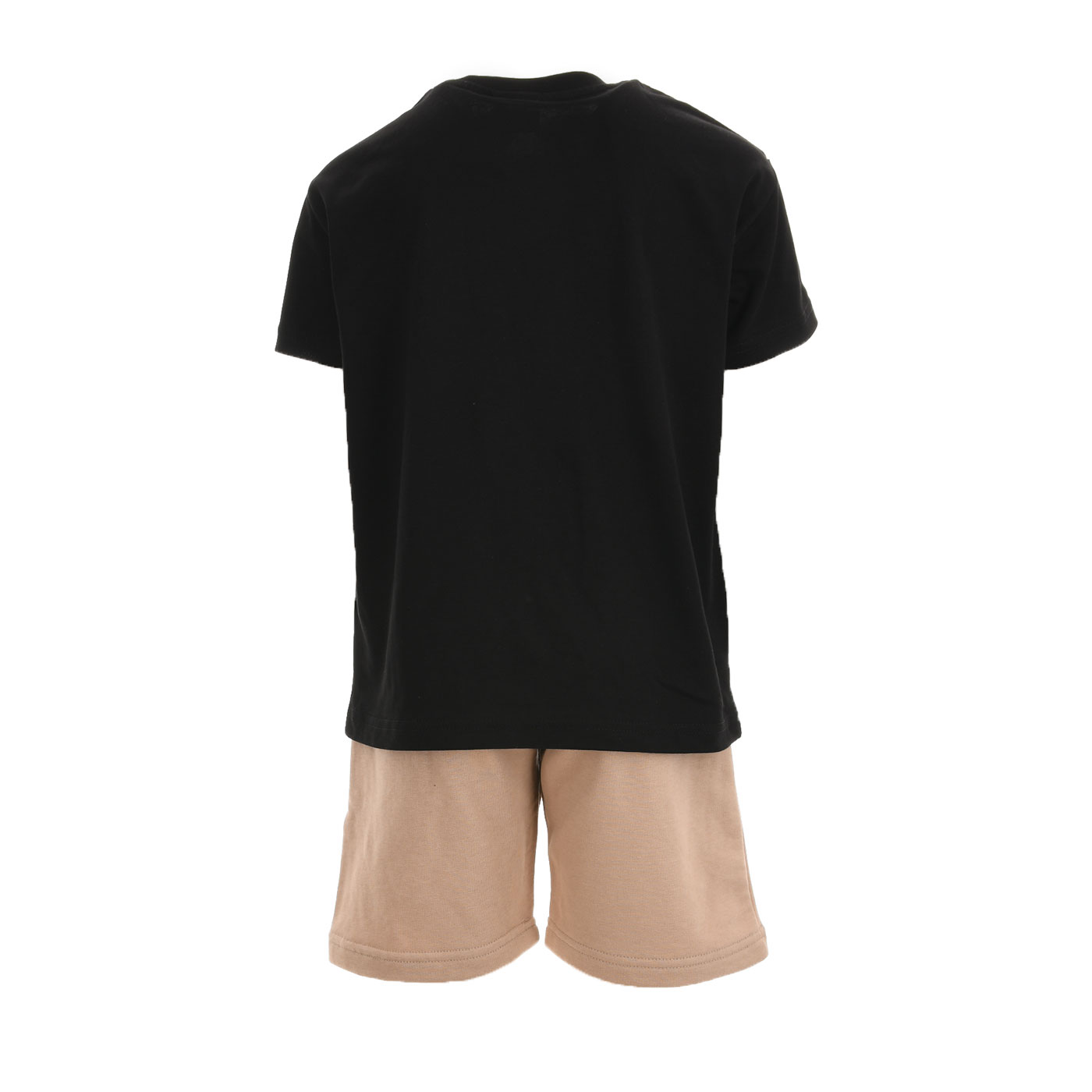 Χαρίστε δυναμικό στυλ στις καλοκαιρινές εμφανίσεις με το παιδικό σετ Trax για αγόρια σε μαύρο και μπεζ. Ένα άνετο και μοντέρνο σύνολο που συνδυάζει sport αισθητική με καθημερινή πρακτικότητα, ιδανικό για δραστήρια παιδιά.Η κοντομάνικη μπλούζα σε μαύρη απόχρωση δίνει ζωντάνια στο look, ενώ το αθλητικό τύπωμα με σχέδιο παπουτσιού και το μήνυμα Game On 24/7 προσθέτουν δυναμικό χαρακτήρα. Το ύφασμα είναι απαλό και φιλικό προς το παιδικό δέρμα, προσφέροντας δροσερή αίσθηση όλη μέρα.Η μπεζ βερμούδα ολοκληρώνει ιδανικά το σύνολο, με ελαστική μέση για άνετη και σταθερή εφαρμογή. Ελαφριά και πρακτική, επιτρέπει ελευθερία κινήσεων στο παιχνίδι και στις βόλτες.