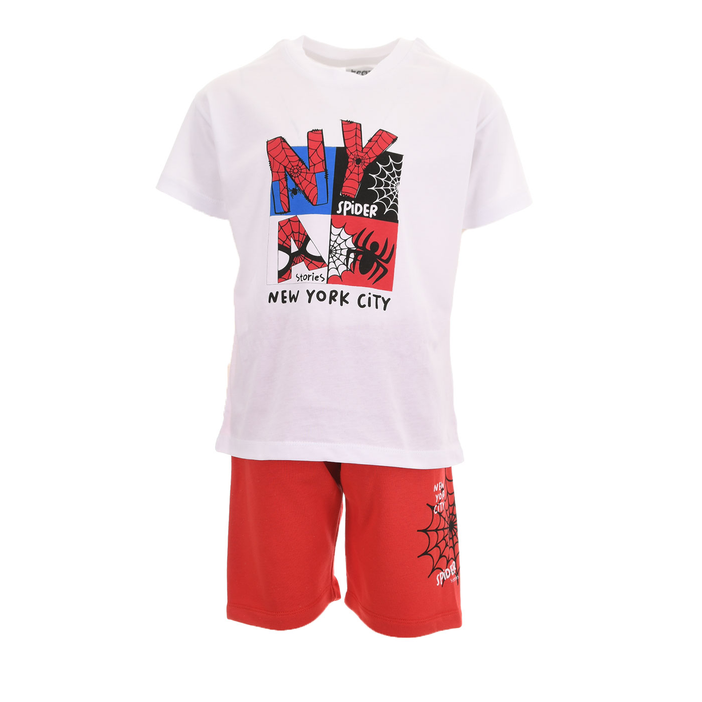 Ανανεώστε το καλοκαιρινό στυλ των μικρών σας με το παιδικό σετ Trax Spider, ένα εντυπωσιακό και άνετο σύνολο που συνδυάζει παιχνιδιάρικο design με καθημερινή πρακτικότητα. Το σετ αποτελείται από λευκό κοντομάνικο t-shirt με εντυπωσιακό spider-inspired τύπωμα και κόκκινη βερμούδα που ολοκληρώνει το look με ζωντάνια και στυλ.Το μπλουζάκι ξεχωρίζει χάρη στο πολύχρωμο γραφικό σχέδιο με αράχνη, ιστούς και urban στοιχεία τύπου New York City, που δίνουν μοντέρνο, street χαρακτήρα. Η βερμούδα σε ζωηρό κόκκινο χρώμα διαθέτει διακριτικό print στο πλάι, προσθέτοντας στυλιστική συνοχή στο σύνολο. Πρόκειται για ένα σετ που τραβάει την προσοχή και αρέσει ιδιαίτερα στα αγόρια που αγαπούν τα δυναμικά σχέδια.Κατασκευασμένο από απαλό βαμβακερό ύφασμα, το σετ προσφέρει άνεση, διαπνοή και ελευθερία κινήσεων όλη μέρα. Είναι ιδανικό για παιχνίδι, βόλτες, διακοπές και καθημερινή χρήση, ενώ αντέχει στις συχνές πλύσεις χωρίς να χάνει το σχήμα και τα χρώματά του.