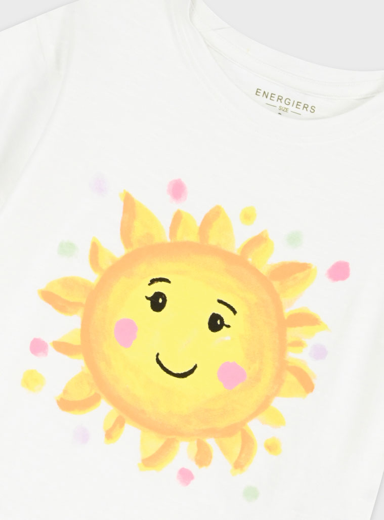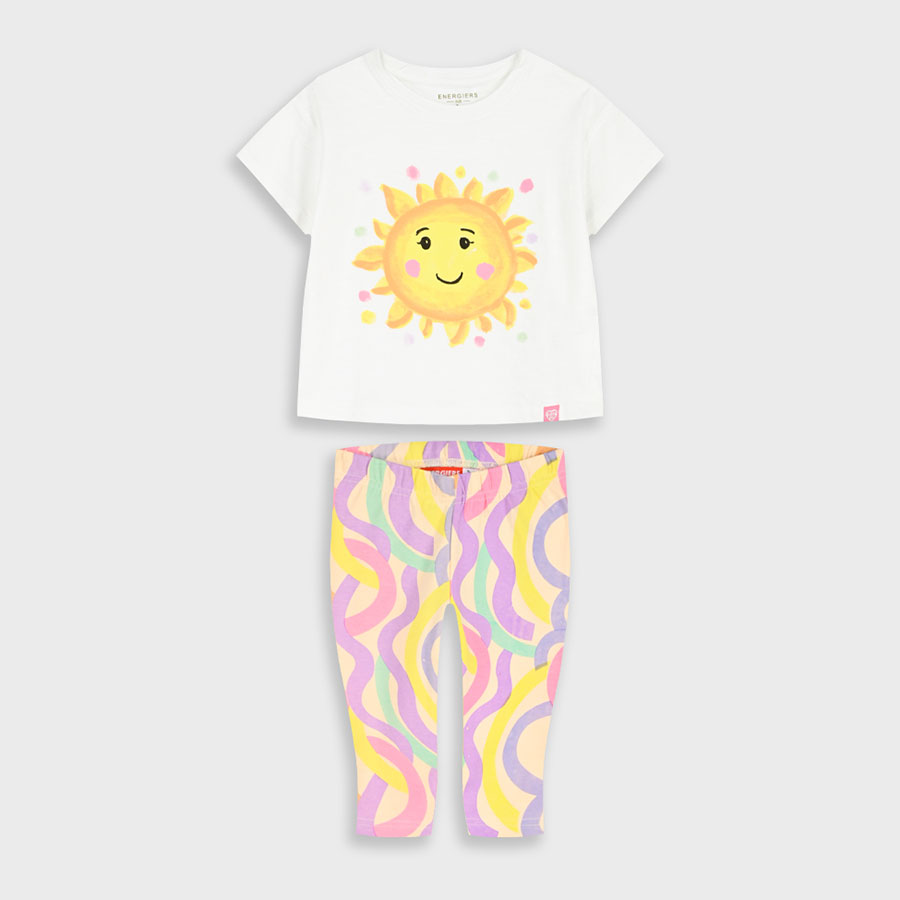 Το παιδικό σετ με κάπρι κολάν για κορίτσια Energiers σε άσπρο με print είναι μια χαρούμενη και ξεχωριστή επιλογή για το καλοκαίρι. Η λευκή μπλούζα με παιχνιδιάρικο σχέδιο ήλιου συνδυάζεται τέλεια με το πολύχρωμο κάπρι κολάν, δημιουργώντας ένα φωτεινό και μοντέρνο outfit.