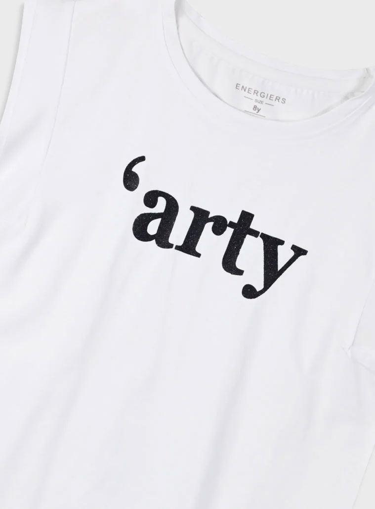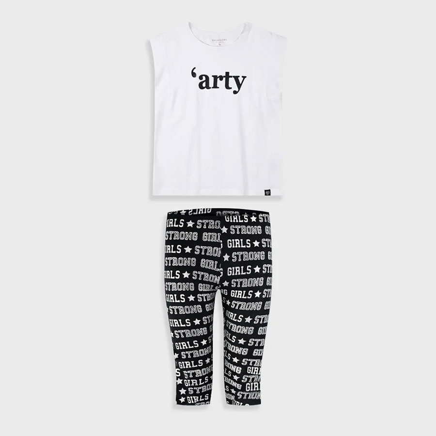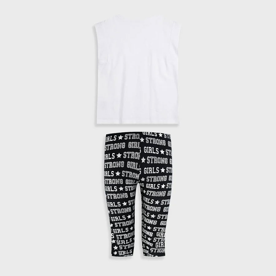Το παιδικό σετ Energiers για κορίτσια σε λευκό και μαύρο με κάπρι κολάν είναι η τέλεια επιλογή για κομψές αλλά και δυναμικές καθημερινές εμφανίσεις. Το σετ περιλαμβάνει λευκή αμάνικη μπλούζα με minimal print arty και μαύρο κάπρι κολάν με μοντέρνο all-over σχέδιο strong girls, που εκφράζει αυτοπεποίθηση και σύγχρονο στυλ.