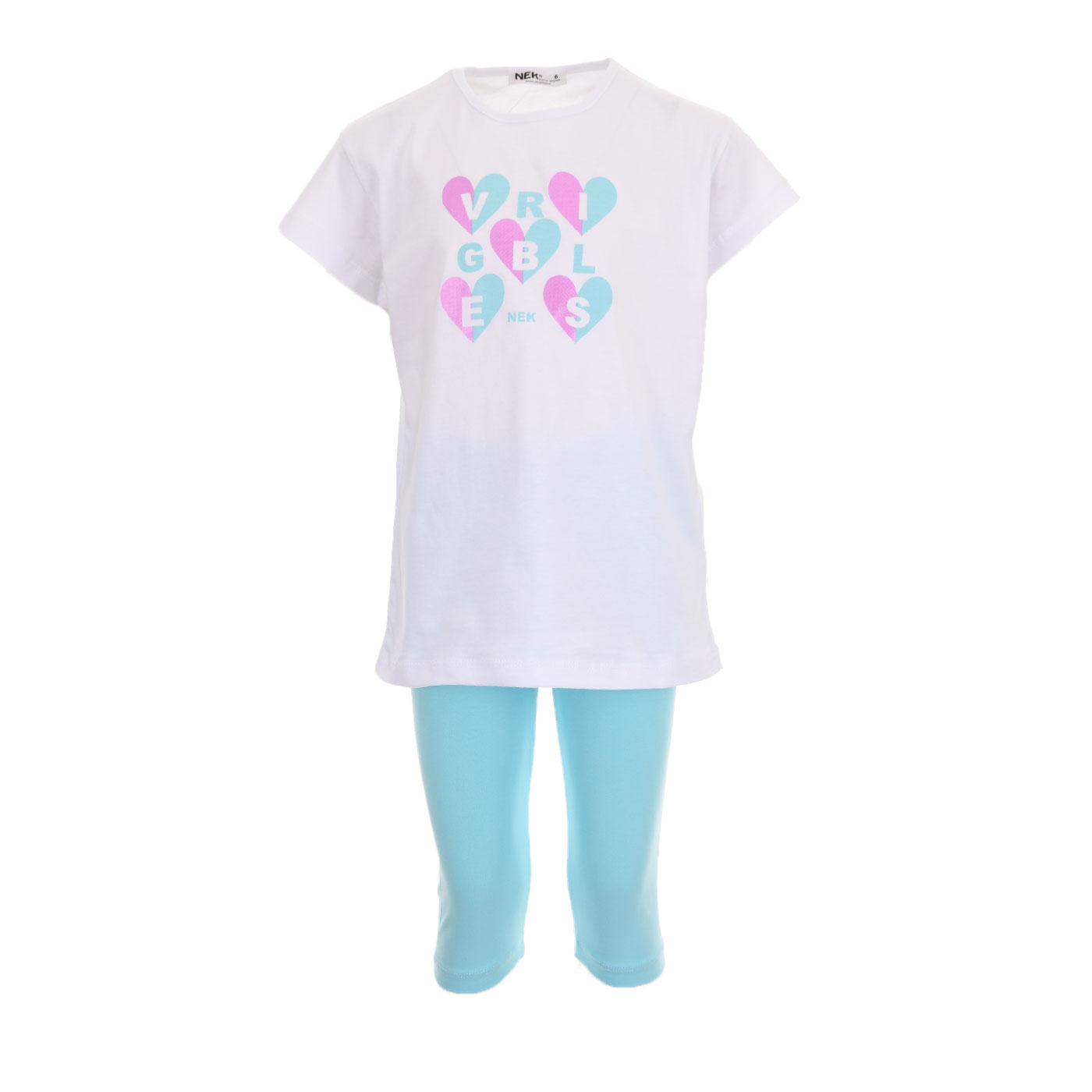 Ανανεώστε το καλοκαιρινό στυλ της μικρής σας με αυτό το γλυκό και άνετο παιδικό σετ με κάπρι κολάν για κορίτσια από τη Nekidswear σε δροσερό συνδυασμό λευκού και σιέλ.