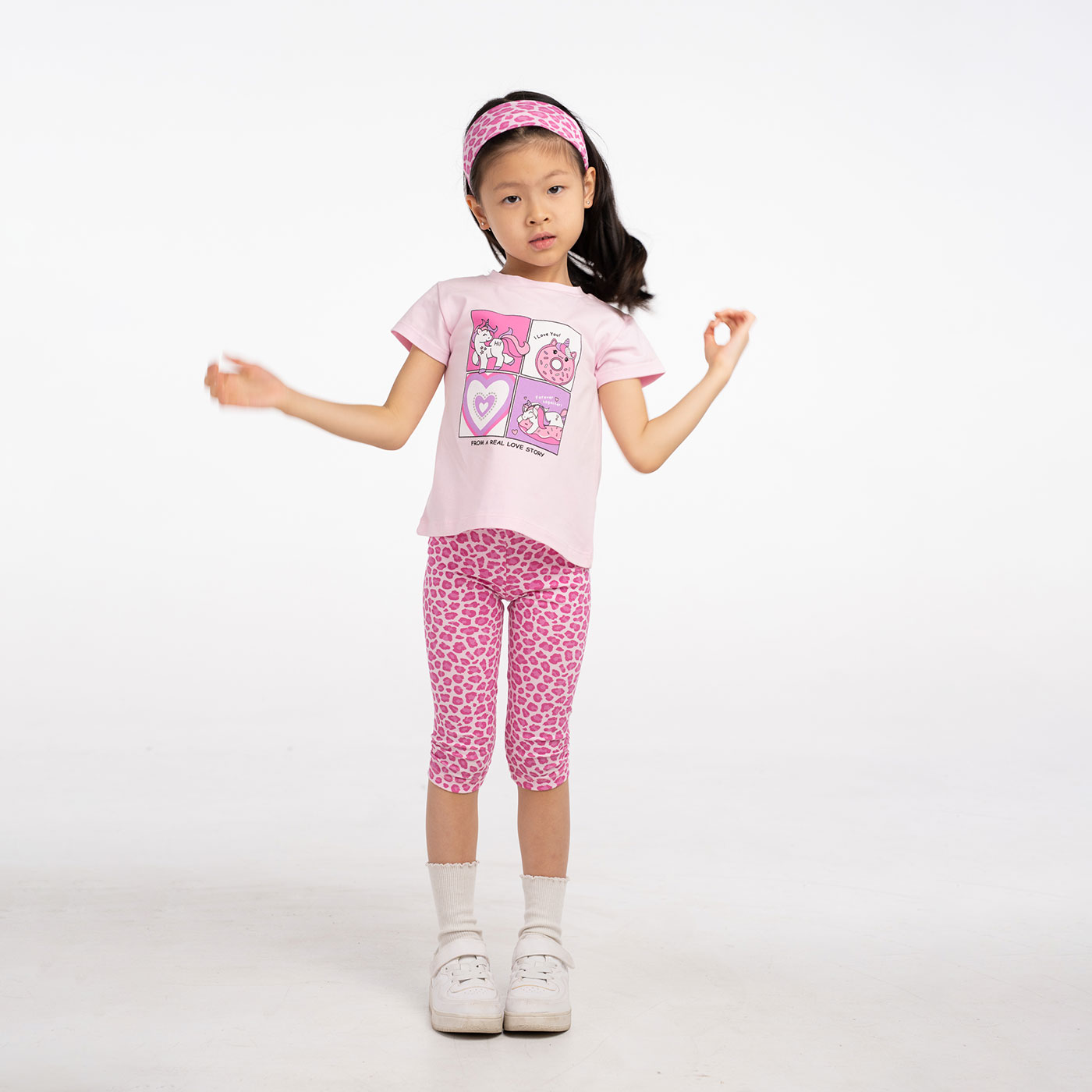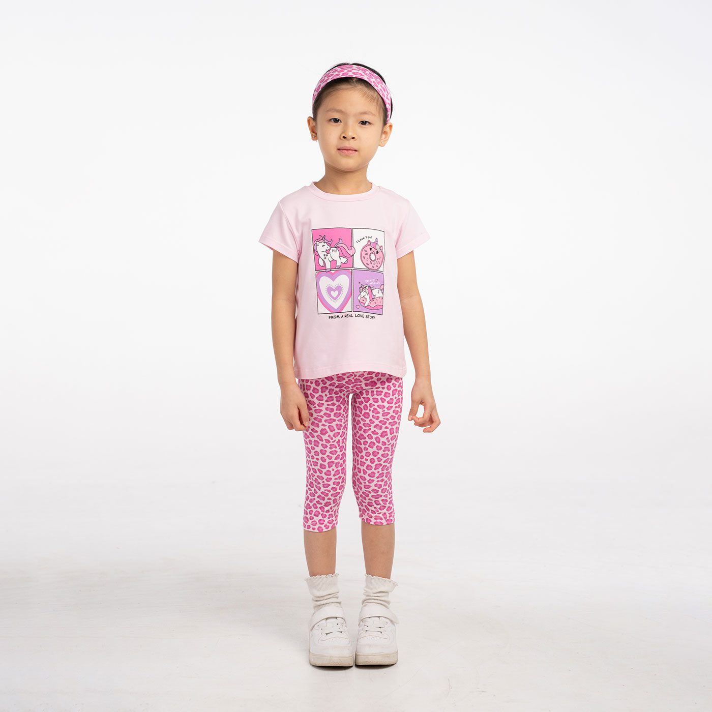 Ένα χαριτωμένο και πρακτικό σύνολο που θα λατρέψουν τα κορίτσια! Το παιδικό σετ 3 τεμαχίων Ebita σε ροζ αποχρώσεις συνδυάζει άνεση, στυλ και παιχνιδιάρικη διάθεση. Περιλαμβάνει κοντομάνικη μπλούζα με μοντέρνο print, κολάν 3/4 με εντυπωσιακό all-over μοτίβο και ασορτί κορδέλα μαλλιών για ολοκληρωμένη εμφάνιση.Η μπλούζα είναι κατασκευασμένη από απαλό βαμβακερό ύφασμα που αφήνει το δέρμα να αναπνέει, ενώ το κολάν διαθέτει ελαστική μέση για σταθερή αλλά άνετη εφαρμογή. Το ζωηρό ροζ print χαρίζει χαρούμενο χαρακτήρα και κάνει το σετ ιδανικό για καθημερινές δραστηριότητες, σχολείο και βόλτες.