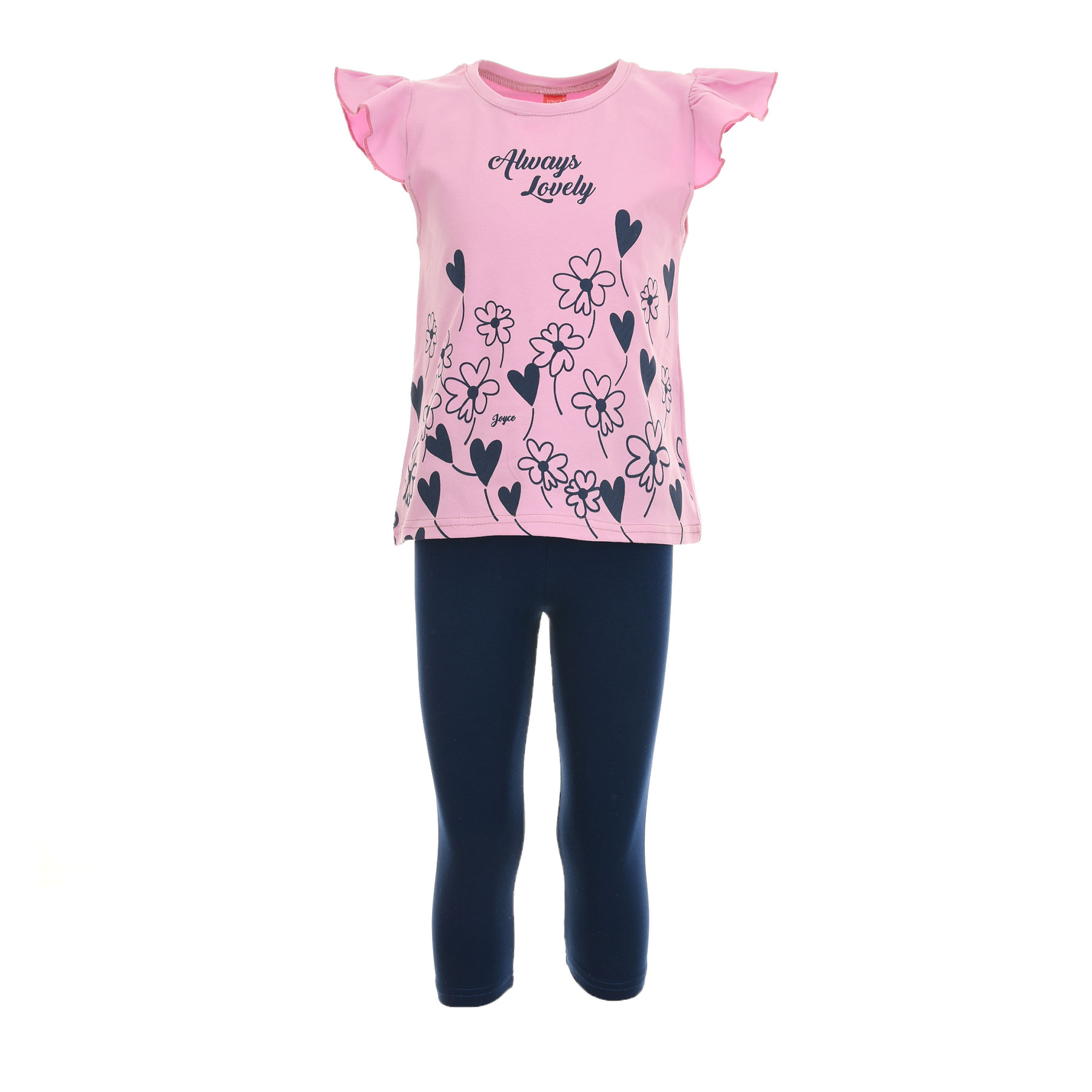 Ρομαντικό, άνετο και ιδανικό για κάθε μέρα! Το παιδικό σετ Joyce σε λιλά και μπλε μαρέν συνδυάζει γλυκά σχέδια με πρακτική εφαρμογή, δημιουργώντας ένα σύνολο που λατρεύουν τα κορίτσια.Η λιλά μπλούζα με το μήνυμα Always Lovely και το μοτίβο από λουλούδια και καρδιές χαρίζει χαρούμενη και κοριτσίστικη διάθεση. Τα διακριτικά βολάν στα μανίκια προσθέτουν στυλ και κομψότητα. Το μπλε μαρέν κολάν 3/4 προσφέρει άνεση και σταθερή εφαρμογή, ιδανικό για παιχνίδι και βόλτες.Ένα ευκολοφόρετο καλοκαιρινό σετ για καθημερινές εμφανίσεις με στυλ.