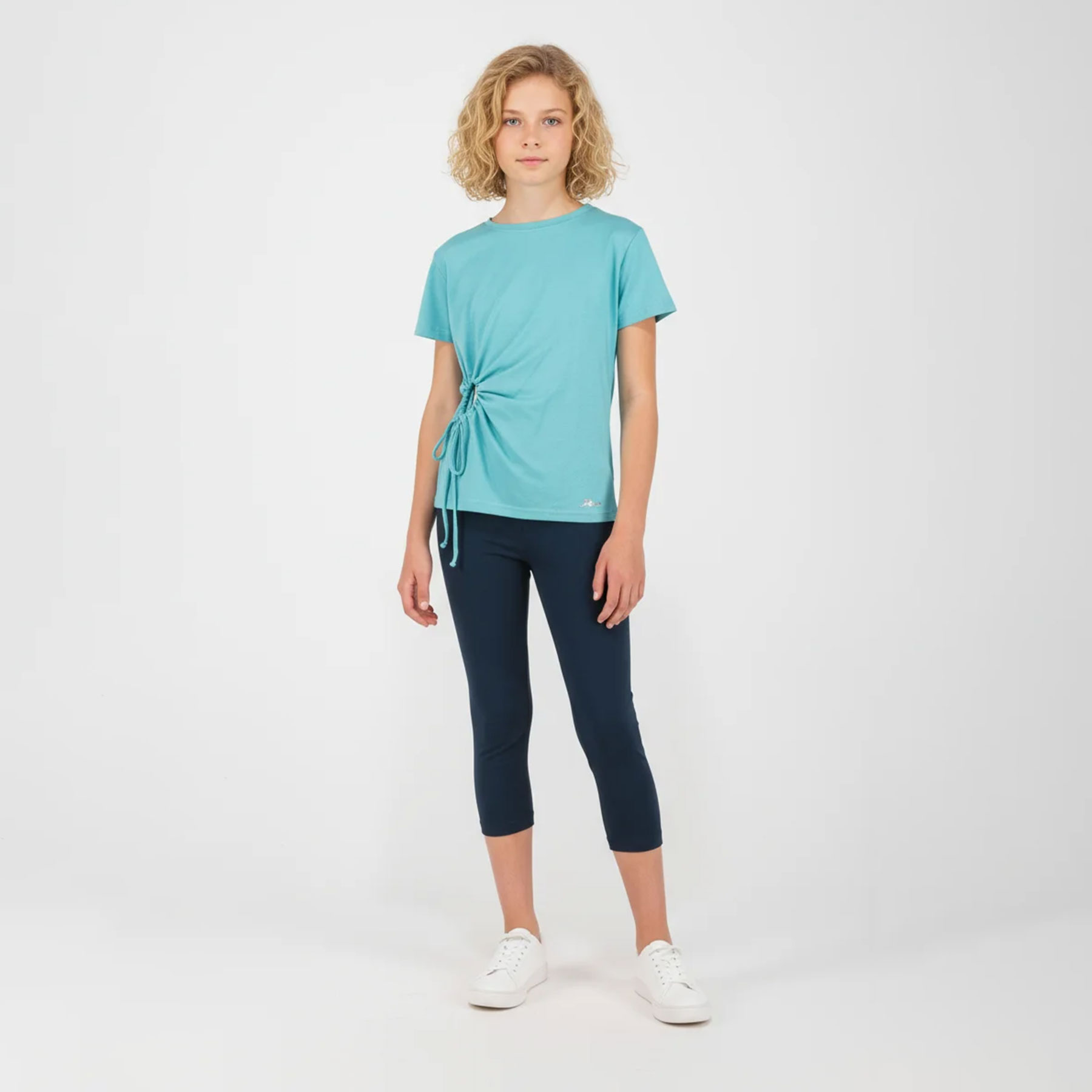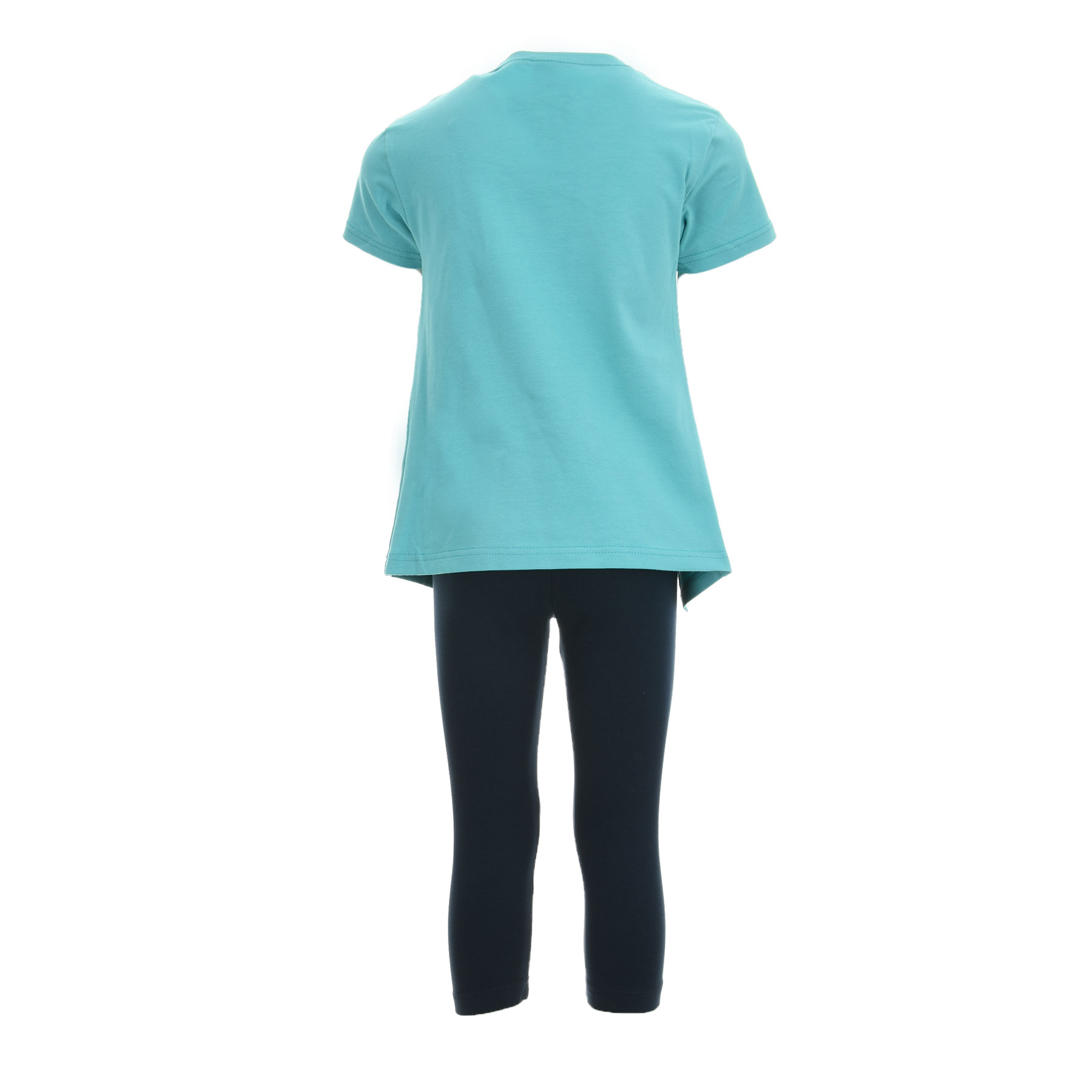 Ένα ξεχωριστό κοριτσίστικο σετ της Joyce που συνδυάζει στυλ και άνεση. Αποτελείται από μέντα κοντομάνικη μπλούζα με εντυπωσιακό πλαϊνό άνοιγμα και διακοσμητικό δέσιμο, καθώς και μπλε μαρέν κολάν 3/4 που εφαρμόζει τέλεια στο σώμα.Ιδανικό για μικρές fashionistas που θέλουν κάτι διαφορετικό στις καθημερινές τους εμφανίσεις.