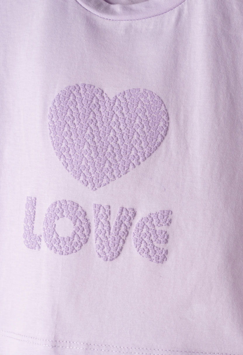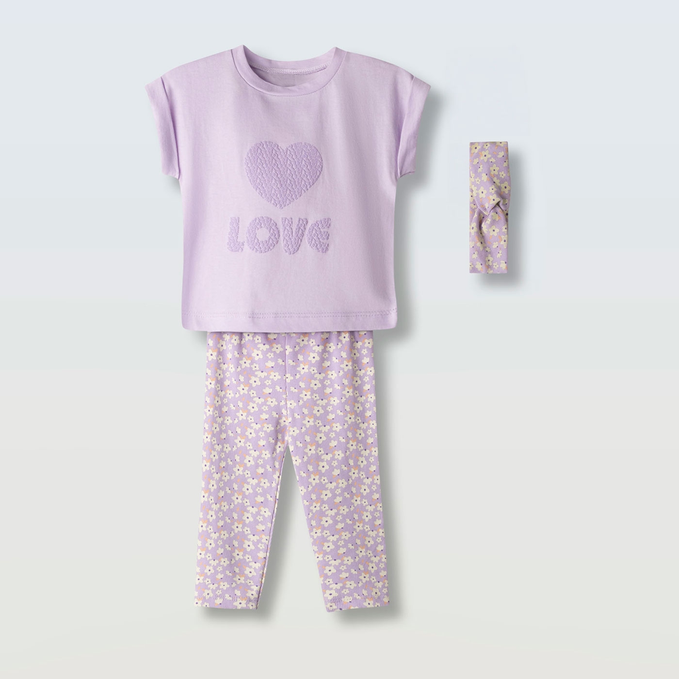 Ένα γλυκό και καλοκαιρινό σύνολο που συνδυάζει άνεση και ρομαντικό στυλ! Το παιδικό σετ 3 τεμαχίων Ebita σε λιλά αποχρώσεις είναι ιδανικό για κορίτσια που αγαπούν τα απαλά χρώματα και τα λουλουδάτα σχέδια. Περιλαμβάνει μπλούζα με ανάγλυφο σχέδιο καρδιάς και LOVE, φλοράλ κολάν και ασορτί κορδέλα για ολοκληρωμένη εμφάνιση.Η μπλούζα είναι από μαλακό βαμβακερό ύφασμα που προσφέρει δροσερή αίσθηση και άνεση όλη μέρα. Το κολάν εφαρμόζει τέλεια χάρη στην ελαστική μέση και επιτρέπει ελευθερία κινήσεων στο παιχνίδι και στις δραστηριότητες. Το μικρό φλοράλ μοτίβο χαρίζει χαριτωμένο και φρέσκο look, ιδανικό για άνοιξη και καλοκαίρι.