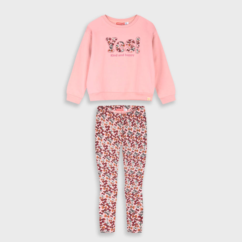 Ανανεώστε την παιδική γκαρνταρόμπα με το κοριτσίστικο σετ της Energiers σε ροζ απόχρωση. Το σετ περιλαμβάνει μπλούζα φούτερ με στάμπα Yes! Kind and Happy διακοσμημένη με χαριτωμένα φιογκάκια, συνδυασμένη με κολάν όλο σχέδιο (all over print) με πολύχρωμους φιόγκους. Ένα άνετο και στυλάτο σετ, ιδανικό για καθημερινές εμφανίσεις στο σχολείο, στη βόλτα ή στο παιχνίδι.