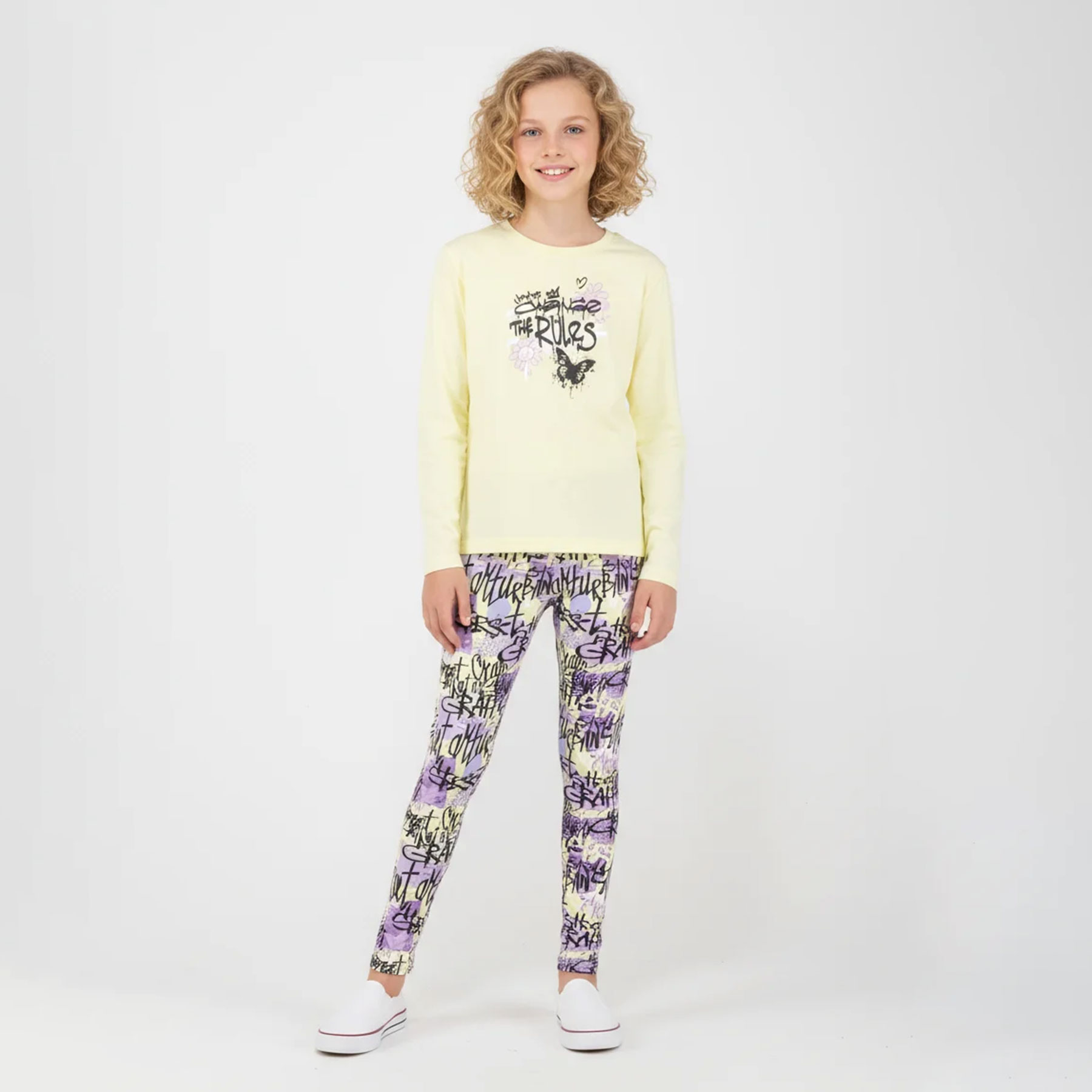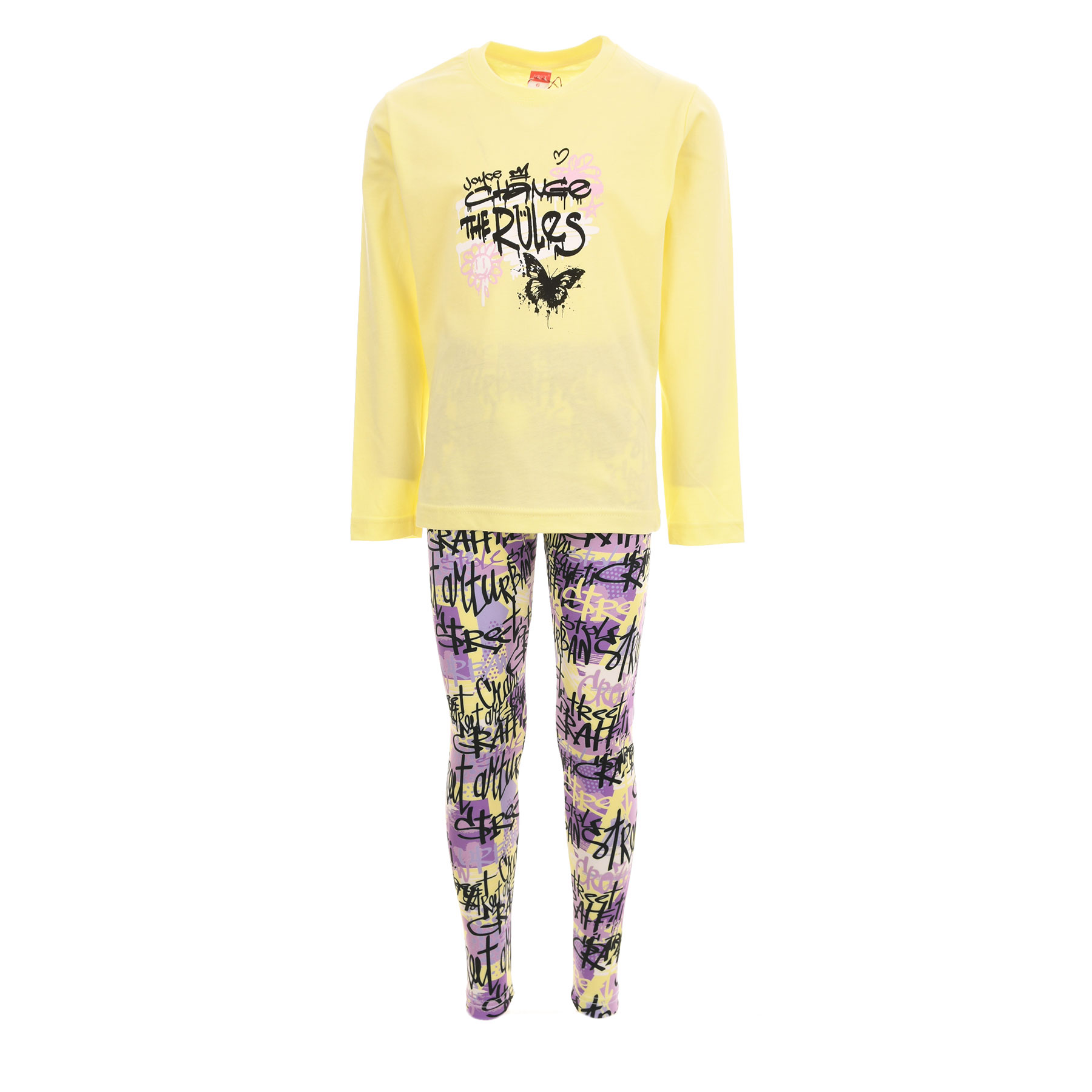 Το παιδικό σετ Joyce κίτρινο με all over print είναι η ιδανική επιλογή για κορίτσια που αγαπούν τη μόδα και τα ξεχωριστά σύνολα. Αποτελείται από μακρυμάνικη μπλούζα σε έντονο κίτρινο με μοντέρνο print μπροστά και εντυπωσιακό κολάν με graffiti-style all over σχέδιο σε κίτρινο, λιλά και μαύρους τόνους.Ένα fashion-forward σύνολο που δίνει χαρακτήρα σε κάθε παιδικό outfit και φοριέται άνετα από το σχολείο μέχρι τη βόλτα.