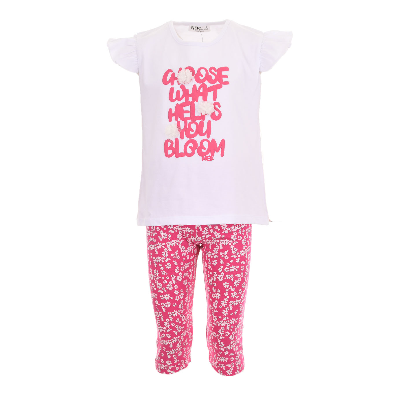 Δώστε ρομαντική και χαρούμενη διάθεση στις εμφανίσεις της μικρής σας με αυτό το υπέροχο παιδικό σετ με κολάν για κορίτσια από τη Nekidswear σε φωτεινό συνδυασμό λευκού και φουξ με floral λεπτομέρειες.