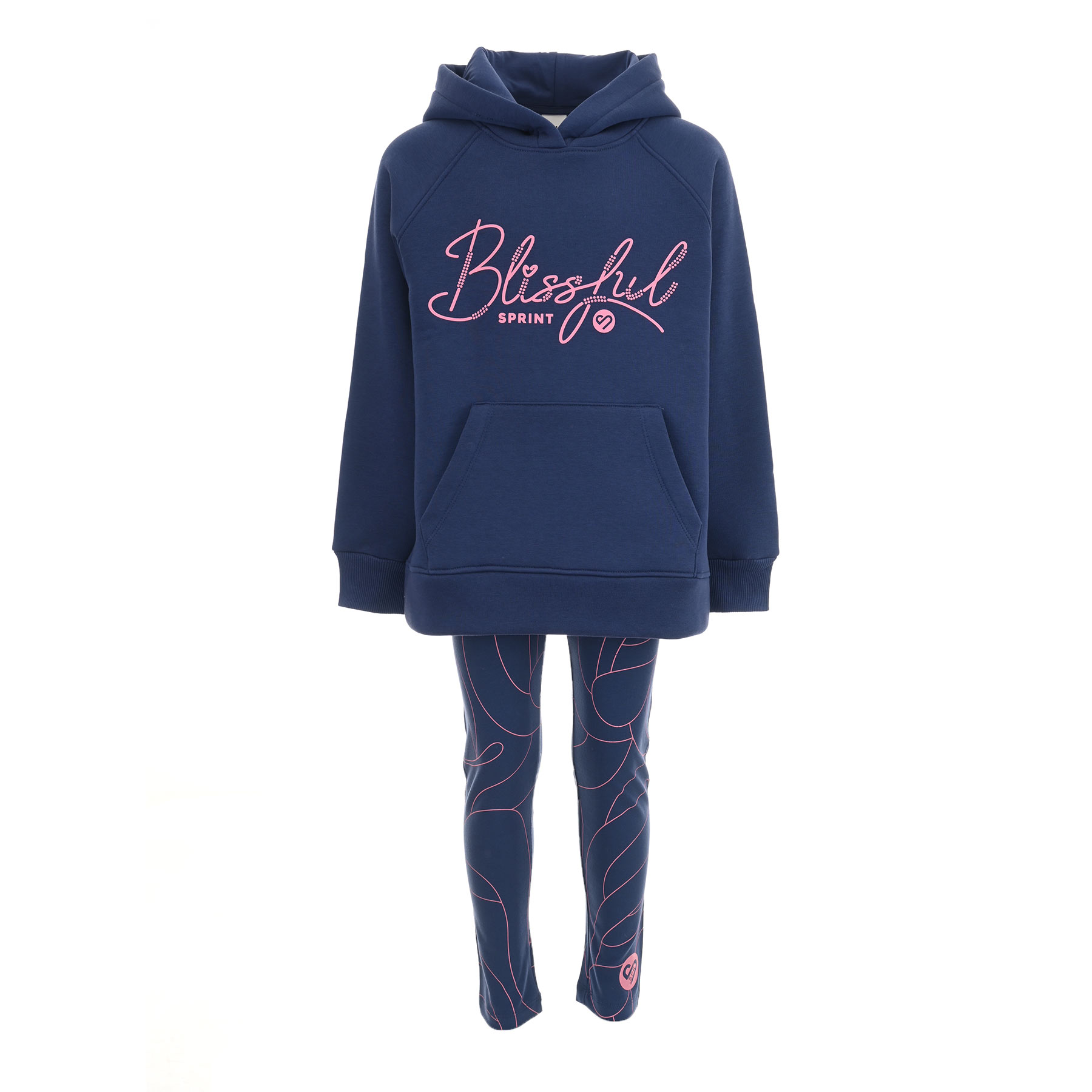 Το παιδικό σετ Sprint σε αποχρώσεις μπλε συνδυάζει στυλ και άνεση, ιδανικό για κάθε μικρή fashionista! Το σετ αποτελείται από φούτερ με κουκούλα και τύπωμα Blissful Sprint στο μπροστινό μέρος, που προσθέτει μία trendy πινελιά, και κολάν με μοντέρνο γραμμικό μοτίβο σε μπλε βάση με λεπτομέρειες.