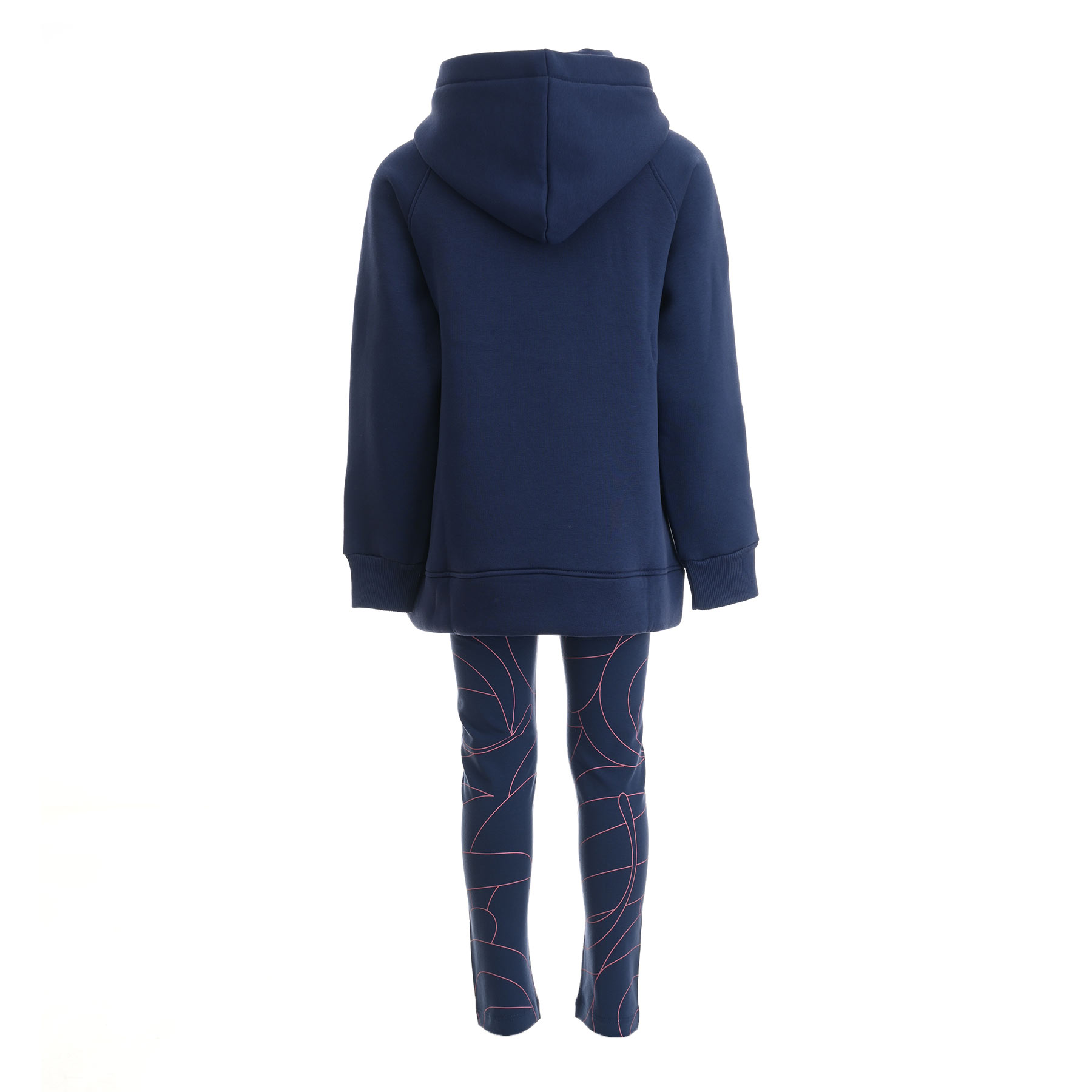 Το φούτερ διαθέτει ελαστικές μανσέτες και μπροστινή τσέπη τύπου καγκουρό, προσφέροντας πρακτικότητα και ζεστασιά, ενώ το κολάν εφαρμόζει άψογα στο σώμα, χαρίζοντας ευελιξία και άνεση στην κίνηση.