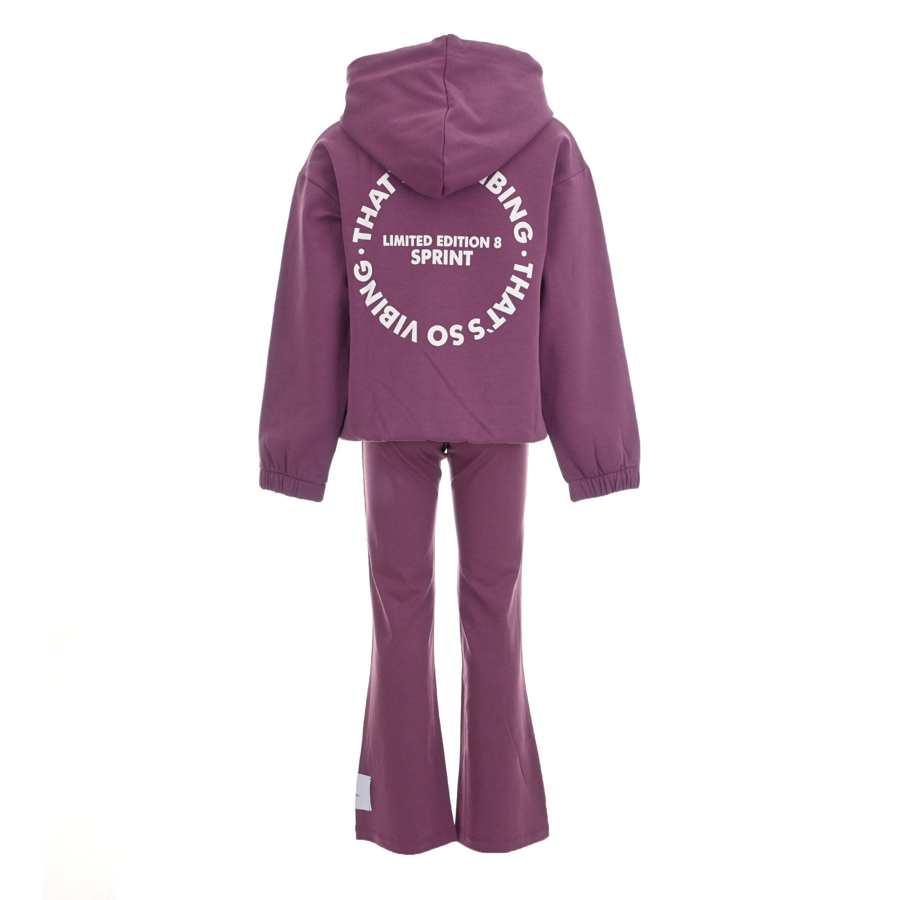 Αποτελείται από oversized φούτερ με κουκούλα και τύπωμα Thats So Vibing στο στήθος και την πλάτη, καθώς και από κολάν καμπάνα με ραφές μπροστά και ελαστική μέση που εξασφαλίζει τέλεια εφαρμογή.