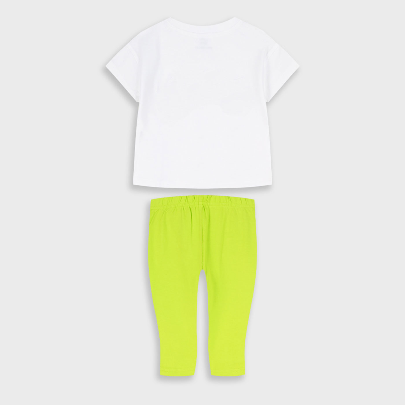 Χαρίστε χαρούμενο και φωτεινό στυλ στις καλοκαιρινές εμφανίσεις με το παιδικό σετ με κολάν κάπρι για κορίτσια Energiers σε λευκό και λαχανί απόχρωση. Το σετ περιλαμβάνει λευκή κοντομάνικη μπλούζα με γλυκό και παιχνιδιάρικο τύπωμα με κοριτσίστικες φιγούρες και διακριτικές χρωματιστές λεπτομέρειες, που προσθέτουν ρομαντική και χαριτωμένη διάθεση στο look. Το λαχανί κάπρι κολάν ξεχωρίζει για το ζωηρό του χρώμα και την άνετη εφαρμογή, αγκαλιάζοντας απαλά το σώμα και προσφέροντας ελευθερία κινήσεων σε κάθε δραστηριότητα. Κατασκευασμένο από μαλακό βαμβακερό ύφασμα με ελαστικότητα, εξασφαλίζει δροσερή αίσθηση, άνεση και αντοχή στην καθημερινή χρήση. Το παιδικό σετ Energiers λευκό-λαχανί αποτελεί ιδανική επιλογή για σχολείο, βόλτες και παιχνίδι, συνδυάζοντας στυλ, πρακτικότητα και καλοκαιρινή φρεσκάδα σε κάθε εμφάνιση.