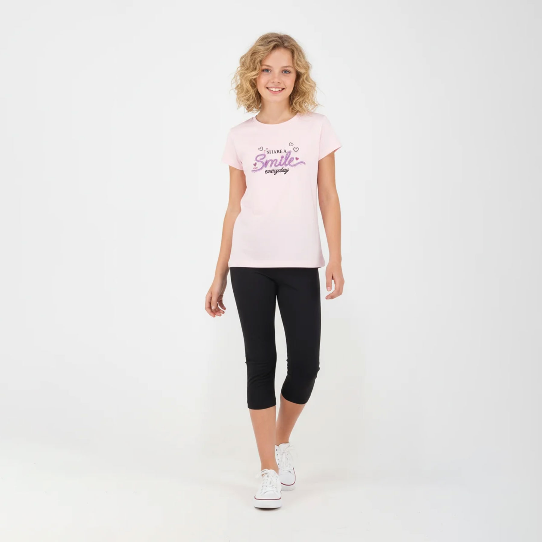 Το παιδικό σετ Joyce με κάπρι κολάν είναι η ιδανική επιλογή για άνετες και στιλάτες καλοκαιρινές εμφανίσεις. Περιλαμβάνει κοντομάνικη μπλούζα σε απαλό ροζ με χαριτωμένο μήνυμα print και μονόχρωμο κάπρι κολάν σε μαύρο που συνδυάζεται εύκολα με κάθε look.Ένα σετ σχεδιασμένο για δραστήρια κορίτσια που θέλουν να νιώθουν άνετα αλλά και μοντέρνα όλη μέρα.