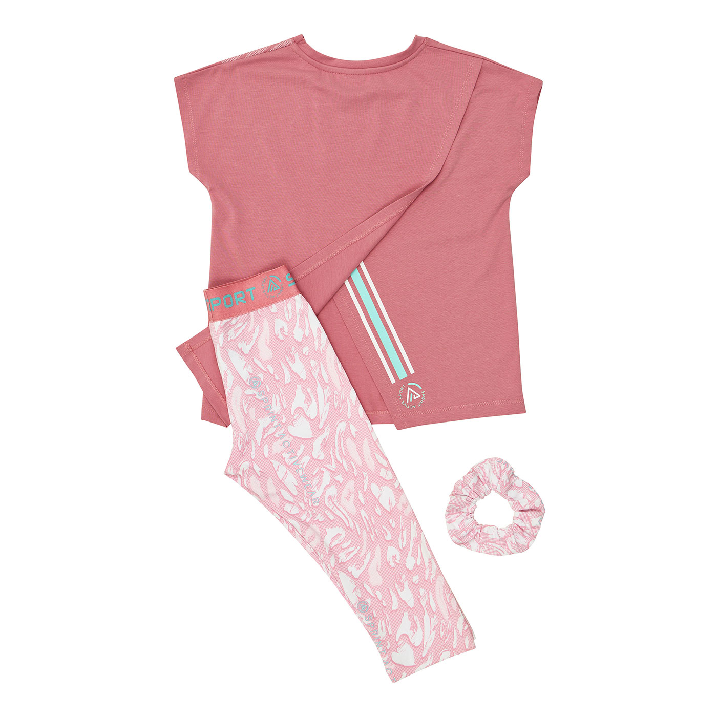 Παιδικό σετ Sprint 3 τεμαχίων για κορίτσια σε ροζ αποχρώσεις με μοντέρνο print, ιδανικό για άνετες και στιλάτες καθημερινές εμφανίσεις. Το σετ περιλαμβάνει κοντομάνικη μπλούζα με sporty τύπωμα, κολάν κάπρι με ελαστική μέση και all-over print, καθώς και ασορτί scrunchie για ολοκληρωμένο look.Κατασκευασμένο από μαλακά, ελαστικά και φιλικά προς το παιδικό δέρμα υφάσματα, προσφέρει άνεση και ελευθερία κινήσεων όλη μέρα. Η μπλούζα διαθέτει μοντέρνο κόψιμο με άνοιγμα στο πίσω μέρος για extra στυλ και δροσερή αίσθηση, ενώ το κάπρι κολάν εφαρμόζει τέλεια χωρίς να πιέζει.Ιδανική επιλογή για σχολείο, δραστηριότητες και βόλτες, αυτό το σετ συνδυάζει άνεση, ποιότητα και sporty fashion χαρακτήρα.