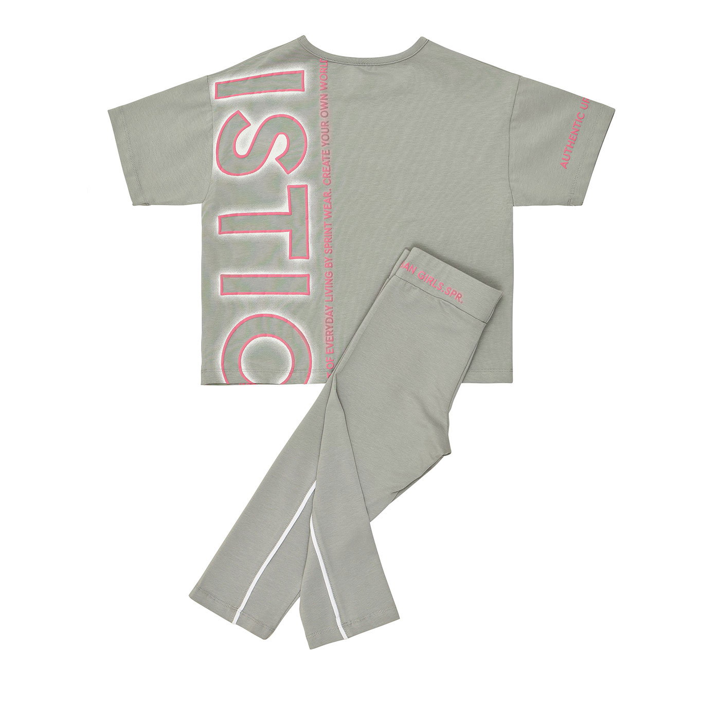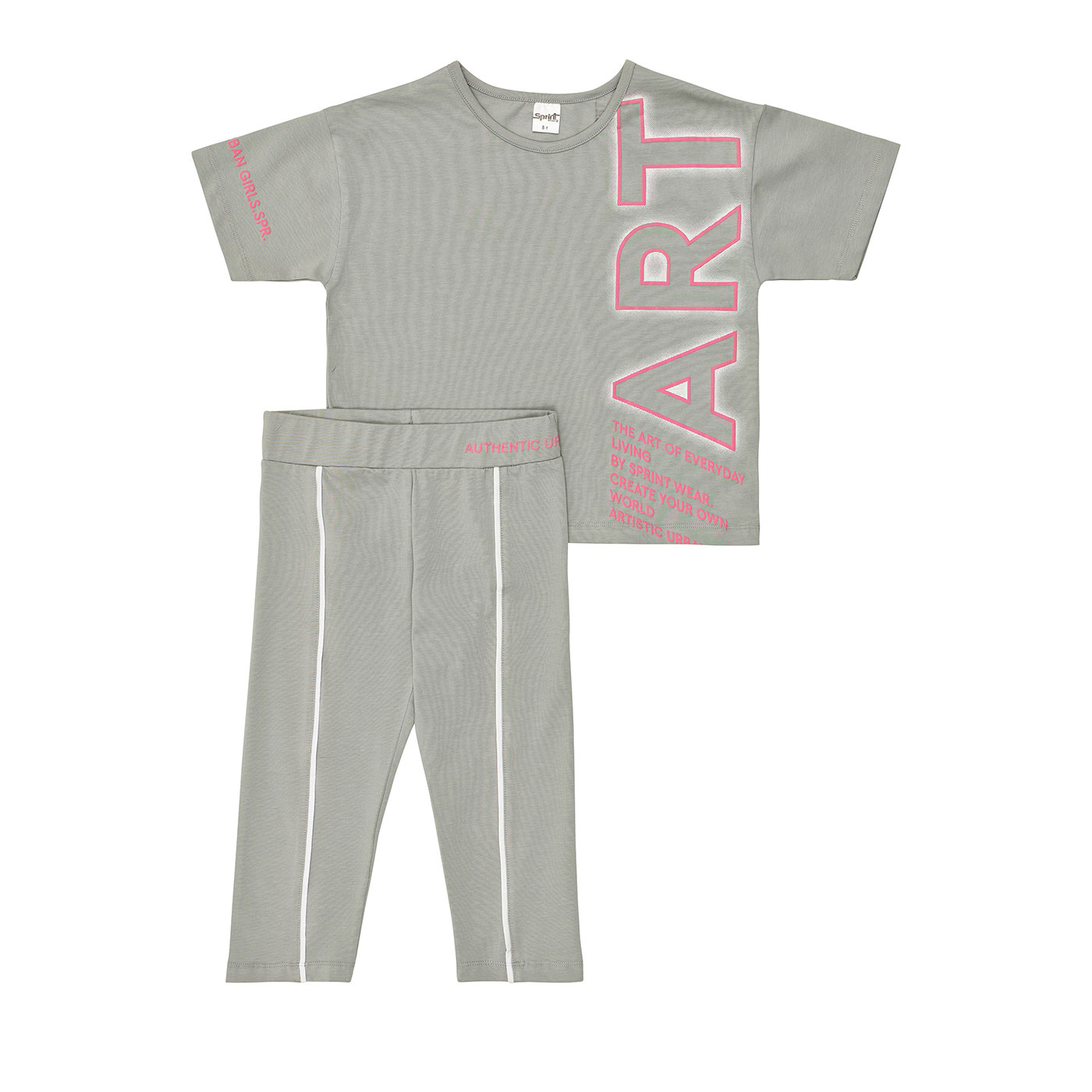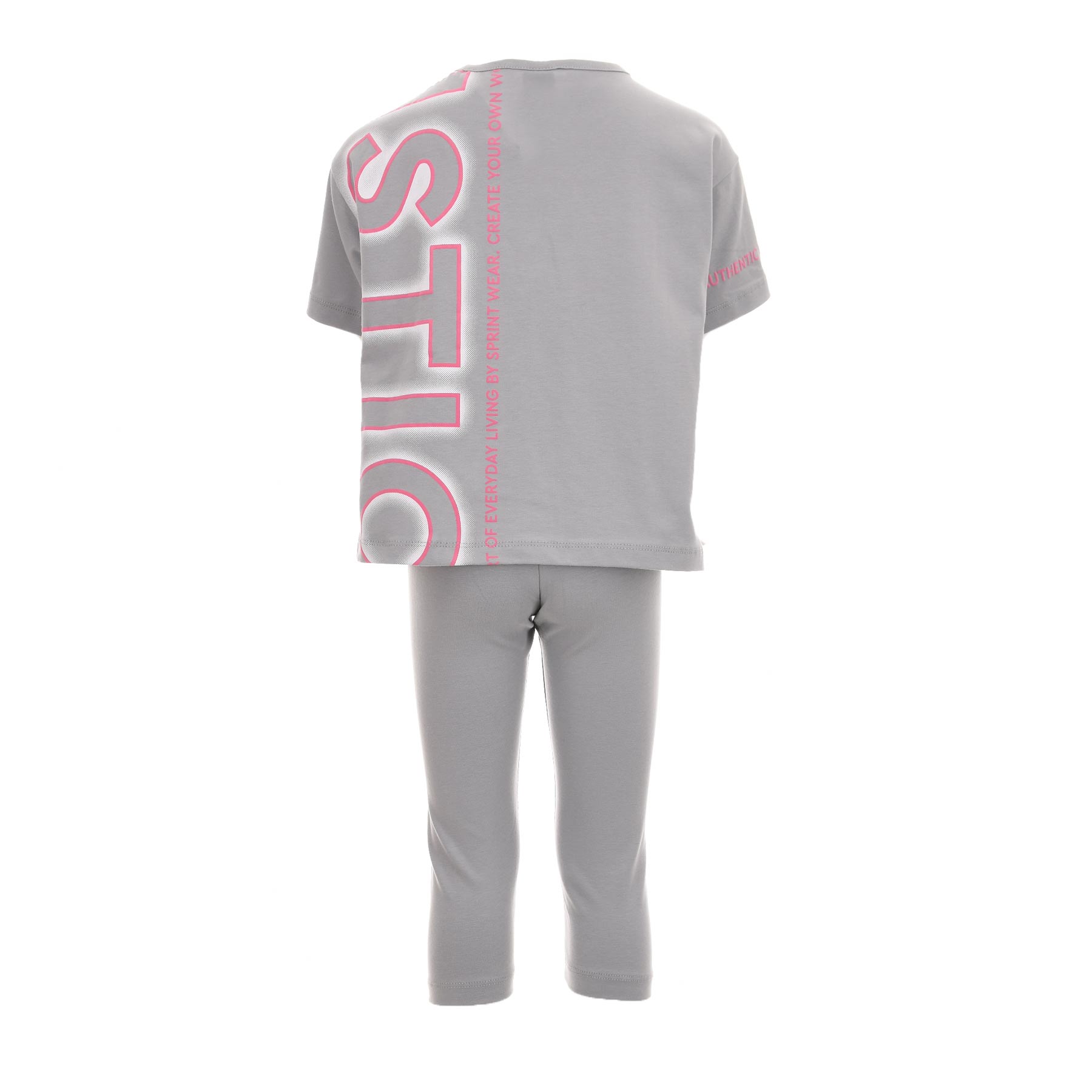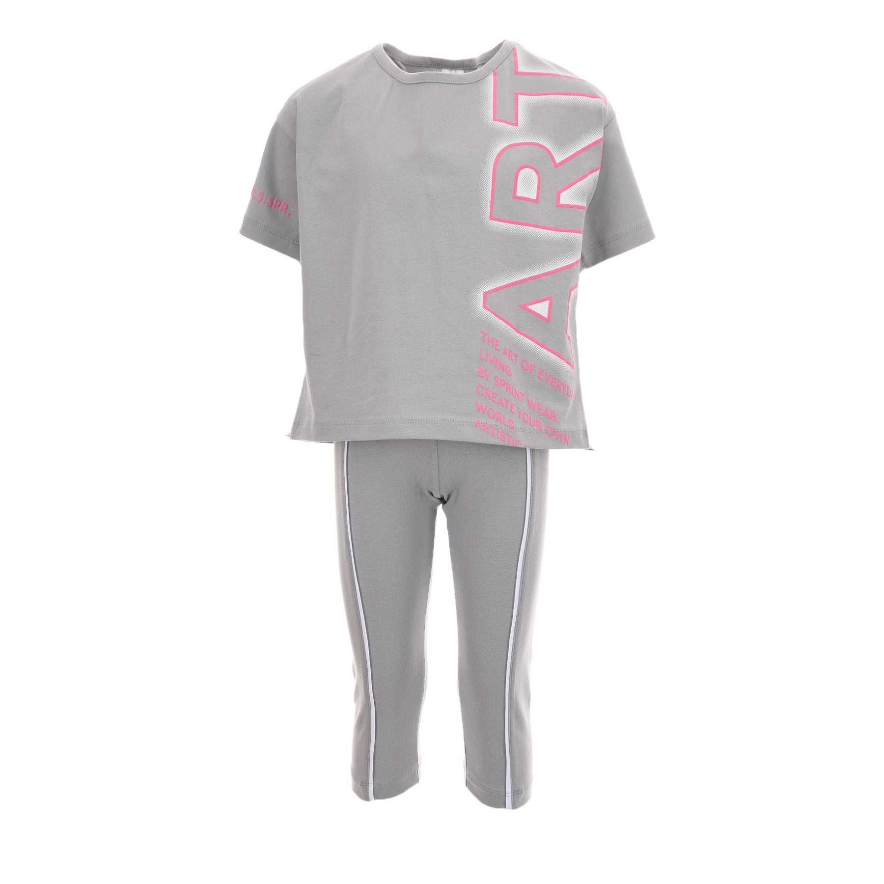 Το παιδικό σετ Sprint σε γκρι απόχρωση είναι η ιδανική επιλογή για κορίτσια που αγαπούν την άνεση και το μοντέρνο sporty στυλ. Αποτελείται από κοντομάνικο μπλουζάκι και κολάν κάπρι, σχεδιασμένα για ελευθερία κινήσεων και καθημερινή χρήση.Το t-shirt διαθέτει σύγχρονο print με ροζ λεπτομέρειες που χαρίζουν δυναμικό χαρακτήρα, ενώ το κάπρι κολάν αγκαλιάζει απαλά το σώμα χωρίς να πιέζει. Ένα σετ που φοριέται άνετα στο σχολείο, στη βόλτα ή στις δραστηριότητες.