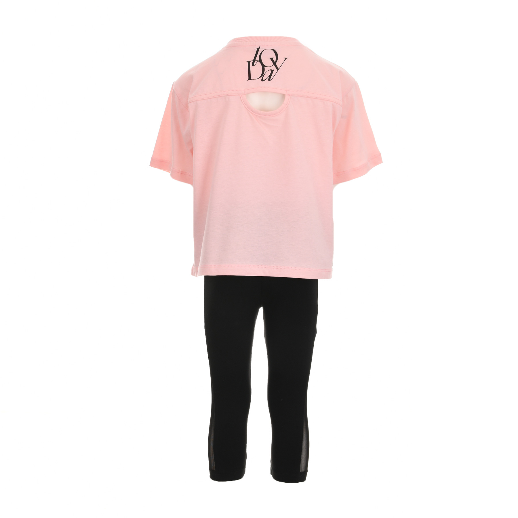 Το παιδικό σετ για κορίτσια Trax σε σομών και μαύρο χρώμα αποτελεί μια μοντέρνα και άνετη επιλογή για τις καθημερινές καλοκαιρινές εμφανίσεις. Το σετ περιλαμβάνει κοντομάνικη μπλούζα και κάπρι κολάν, δημιουργώντας ένα ολοκληρωμένο outfit που συνδυάζει στυλ, άνεση και πρακτικότητα.
