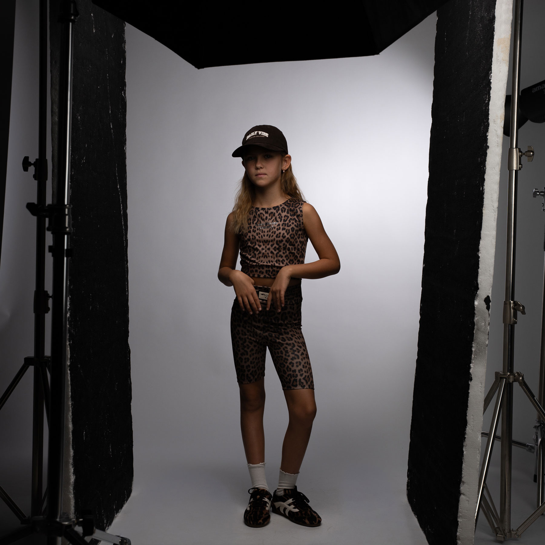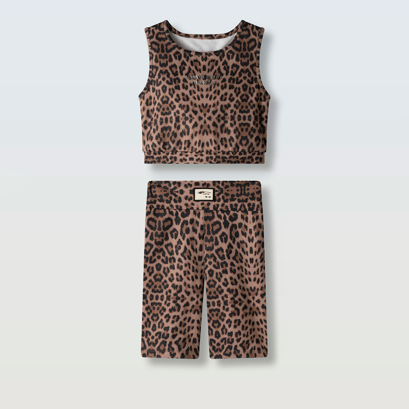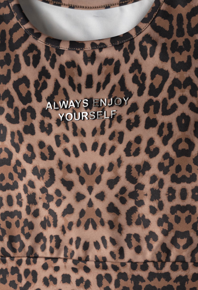 Το παιδικό σετ Ebita με animal print σχέδιο είναι η απόλυτη fashion επιλογή για κορίτσια που αγαπούν τις μοντέρνες και δυναμικές εμφανίσεις. Με εντυπωσιακό λεοπάρ μοτίβο σε γήινες αποχρώσεις, συνδυάζει άνεση και στυλ, δημιουργώντας ένα ξεχωριστό sporty look για κάθε στιγμή της ημέρας.Η αμάνικη μπλούζα σε κανονική γραμμή διαθέτει στρογγυλή λαιμόκοψη και διακριτικό μήνυμα στο μπροστινό μέρος, προσθέτοντας trendy χαρακτήρα χωρίς υπερβολές. Το ύφασμα είναι απαλό, ελαστικό και φιλικό προς το παιδικό δέρμα, ιδανικό για άνοιξη και καλοκαίρι.Το ποδηλατικό κολάν σε εφαρμοστή γραμμή αγκαλιάζει το σώμα προσφέροντας σταθερότητα και ελευθερία κινήσεων, ενώ η ελαστική μέση εξασφαλίζει άνετη εφαρμογή όλη μέρα. Το ενιαίο animal print σύνολο δημιουργεί μια ολοκληρωμένη, μοντέρνα πρόταση για σχολείο, βόλτες και δραστηριότητες.