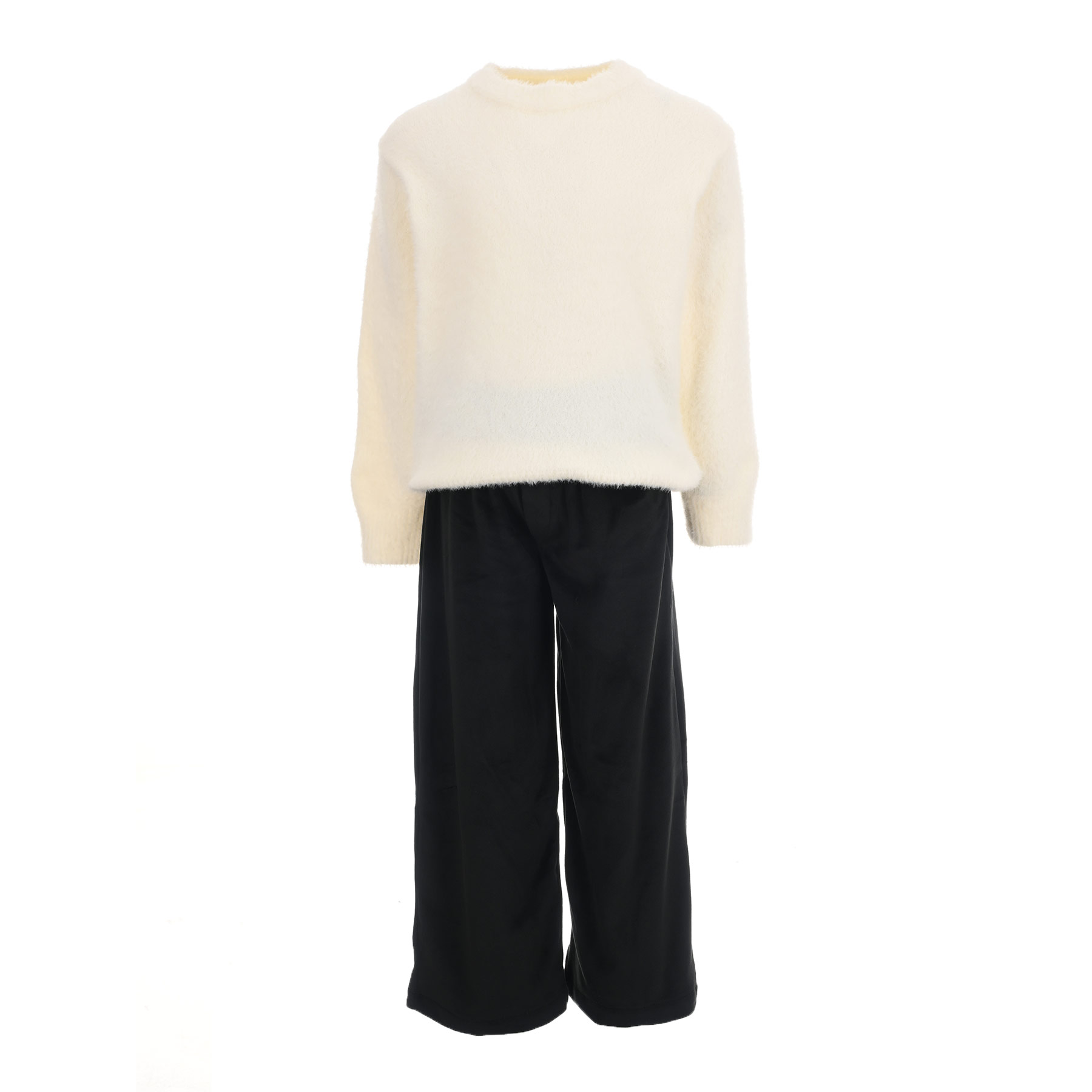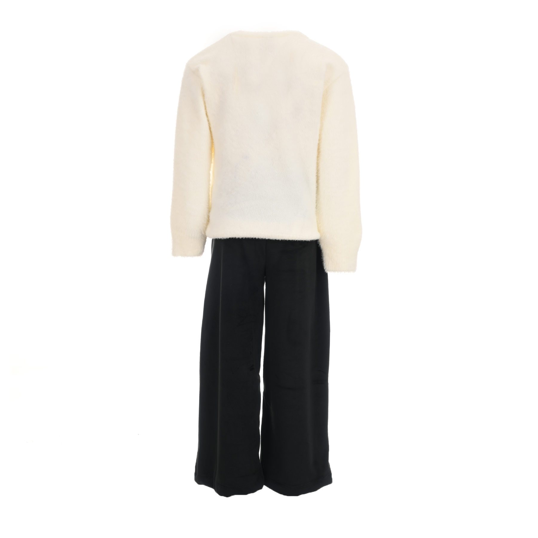 Ανανεώστε τη γκαρνταρόμπα της μικρής σας με αυτό το κομψό παιδικό σετ Restart σε λευκό και μαύρο χρώμα. Το σετ περιλαμβάνει ένα ζεστό και απαλό λευκό πλεκτό πουλόβερ με μακριά μανίκια και μία μαύρη βελουτέ παντελόνα, που συνδυάζονται ιδανικά για άνεση και στυλ όλες τις ώρες.