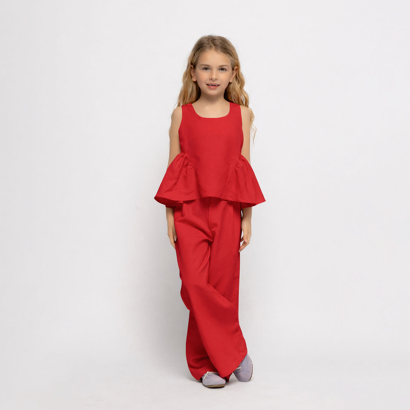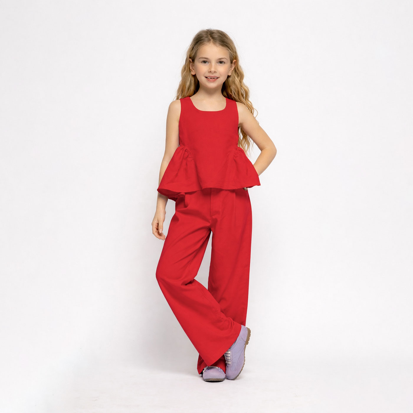 Αναδείξτε το στυλ της μικρής σας με αυτό το εντυπωσιακό παιδικό σετ με παντελόνα για κορίτσια της Alice σε έντονο κόκκινο χρώμα. Ένα outfit που συνδυάζει κομψότητα και άνεση, ιδανικό για ιδιαίτερες περιστάσεις αλλά και για εμφανίσεις που ξεχωρίζουν.
