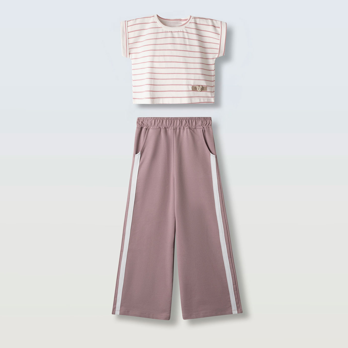 Το παιδικό σετ Ebita σε λευκό ριγέ με ροζ παντελόνα συνδυάζει άνεση και κομψότητα, δημιουργώντας μια μοντέρνα και δροσερή επιλογή για ανοιξιάτικες και καλοκαιρινές εμφανίσεις. Ιδανικό για σχολείο, βόλτες και καθημερινές δραστηριότητες, προσφέρει ελευθερία κινήσεων και στυλ σε κάθε περίσταση.Η κοντομάνικη μπλούζα σε λευκή βάση με ροζ ρίγες διαθέτει χαλαρή γραμμή και στρογγυλή λαιμόκοψη, χαρίζοντας άνετη εφαρμογή και κοριτσίστικη φρεσκάδα. Το απαλό ύφασμα επιτρέπει στο δέρμα να αναπνέει, ενώ η διακριτική λεπτομέρεια στο τελείωμα προσθέτει ξεχωριστό χαρακτήρα.Η ροζ παντελόνα με φαρδιά γραμμή προσφέρει άνεση και κίνηση, ενώ η ελαστική μέση εξασφαλίζει σταθερή εφαρμογή χωρίς πίεση. Οι πλαϊνές λευκές ρίγες ενισχύουν το sporty chic ύφος και ολοκληρώνουν αρμονικά το σύνολο.