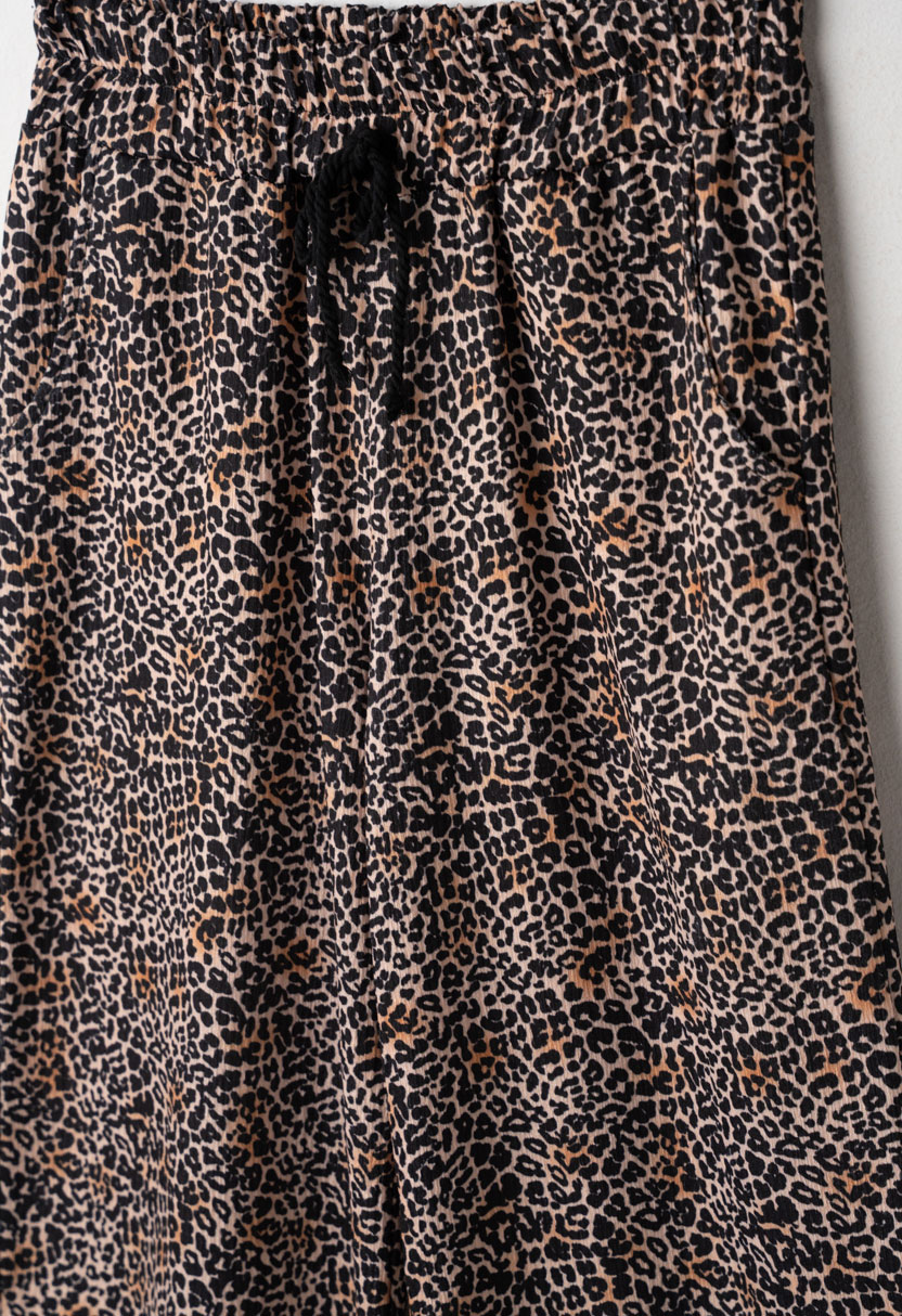 Η άνετη παντελόνα με animal μοτίβο προσθέτει χαρακτήρα στο σύνολο, ενώ η ελαστική μέση με κορδόνι εξασφαλίζει τέλεια εφαρμογή και άνεση στην κίνηση. Το ελαφρύ ύφασμα προσφέρει δροσερή αίσθηση, καθιστώντας το ιδανικό για καλοκαιρινές βόλτες, διακοπές ή ιδιαίτερες εμφανίσεις.