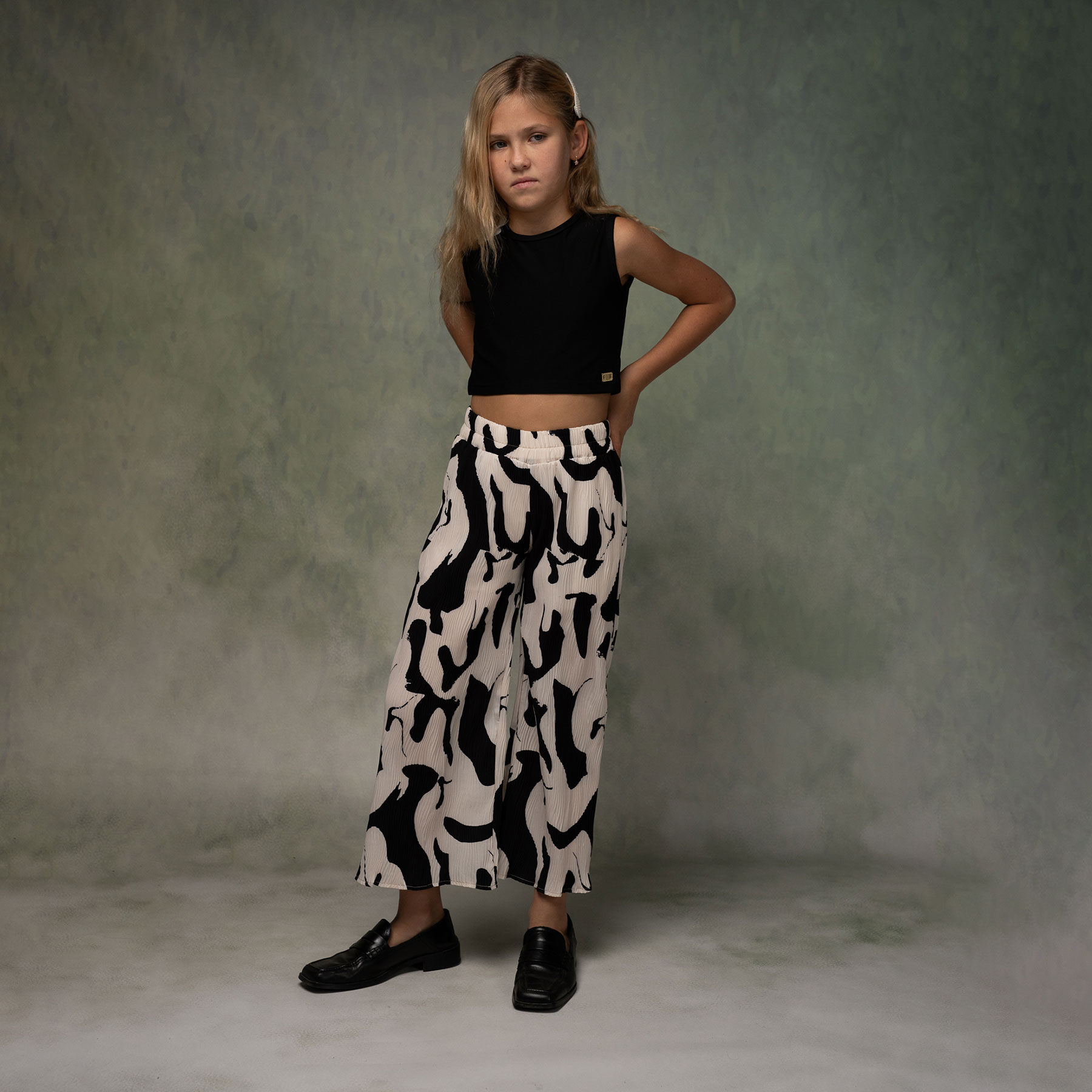 παιδικό σετ κορίτσι, παιδικό σετ με παντελόνα κορίτσι, παιδικά ρούχα Ebita, ασπρόμαυρο σετ κορίτσι, καλοκαιρινό σετ κορίτσι, μοντέρνα παιδικά ρούχα κορίτσι, κομψό παιδικό σύνολο κορίτσι.