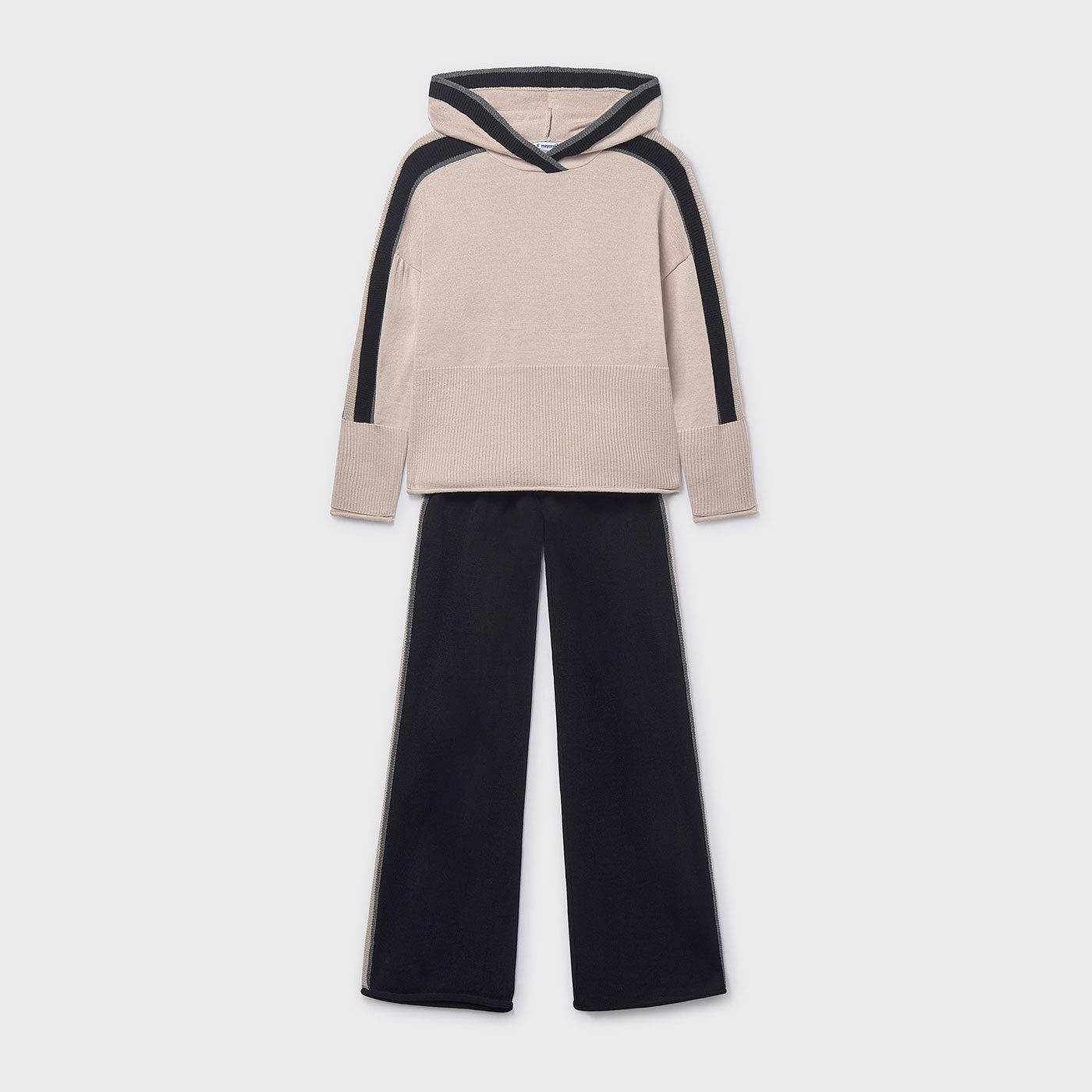Παιδικά ρούχα Mayoral Παιδικό σετ με παντελόνα Mayoral Παιδικό σετ με παντελόνα πλεκτό για κορίτσια Mayoral μπεζ - μαύρο