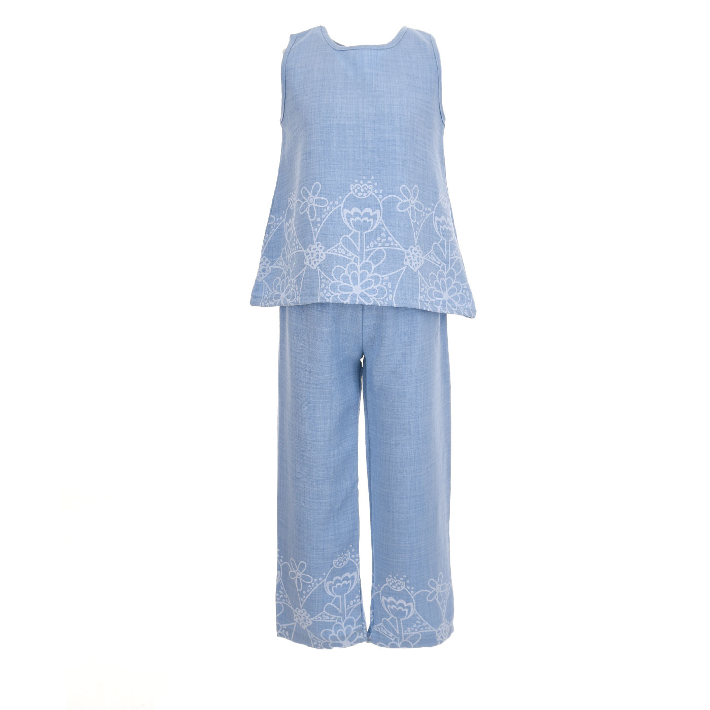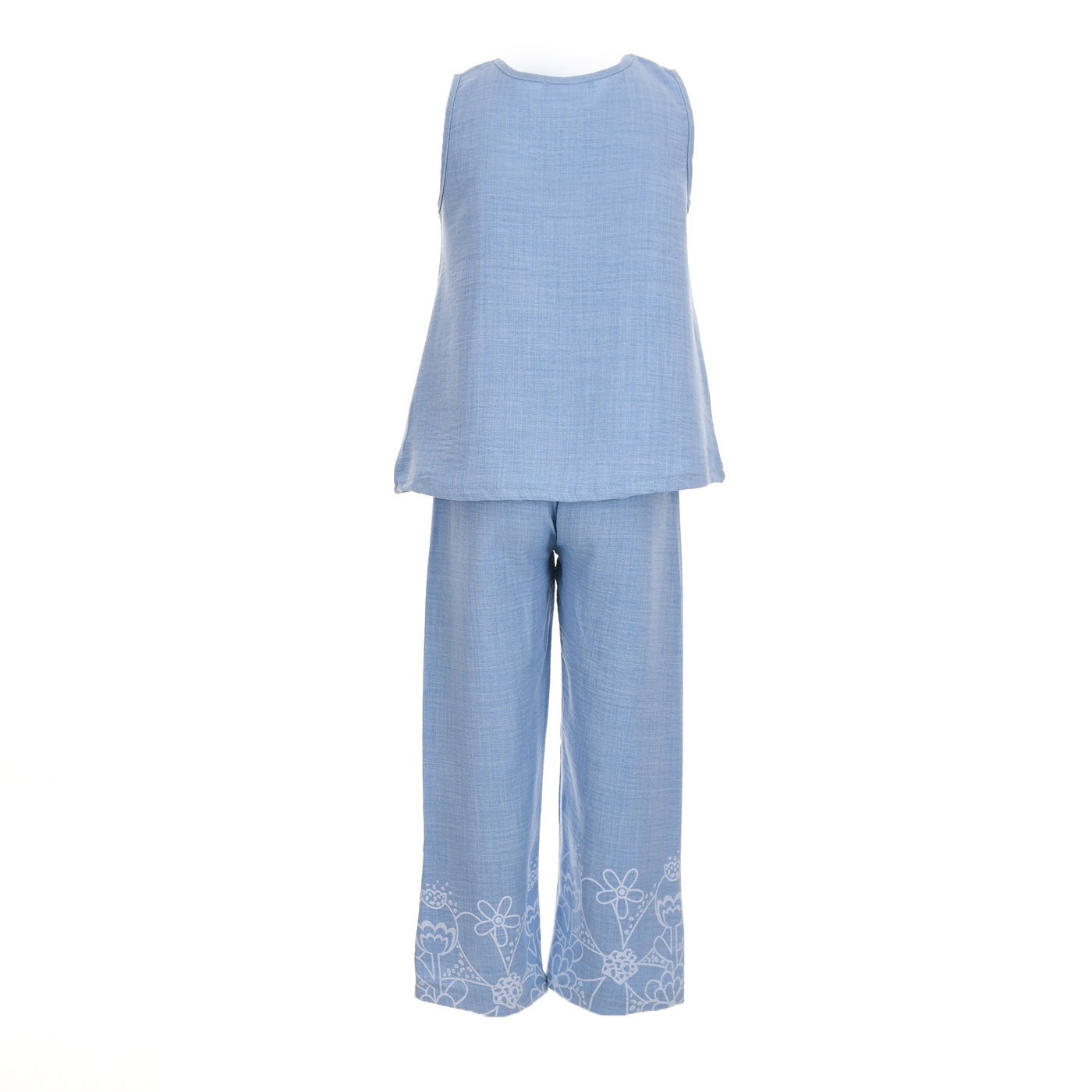 Αέρινο, κομψό και απόλυτα καλοκαιρινό, αυτό το παιδικό σετ με παντελόνι για κορίτσια από τη Nekidswear σε υπέροχη σιέλ απόχρωση αποτελεί ιδανική επιλογή για ξεχωριστές εμφανίσεις.