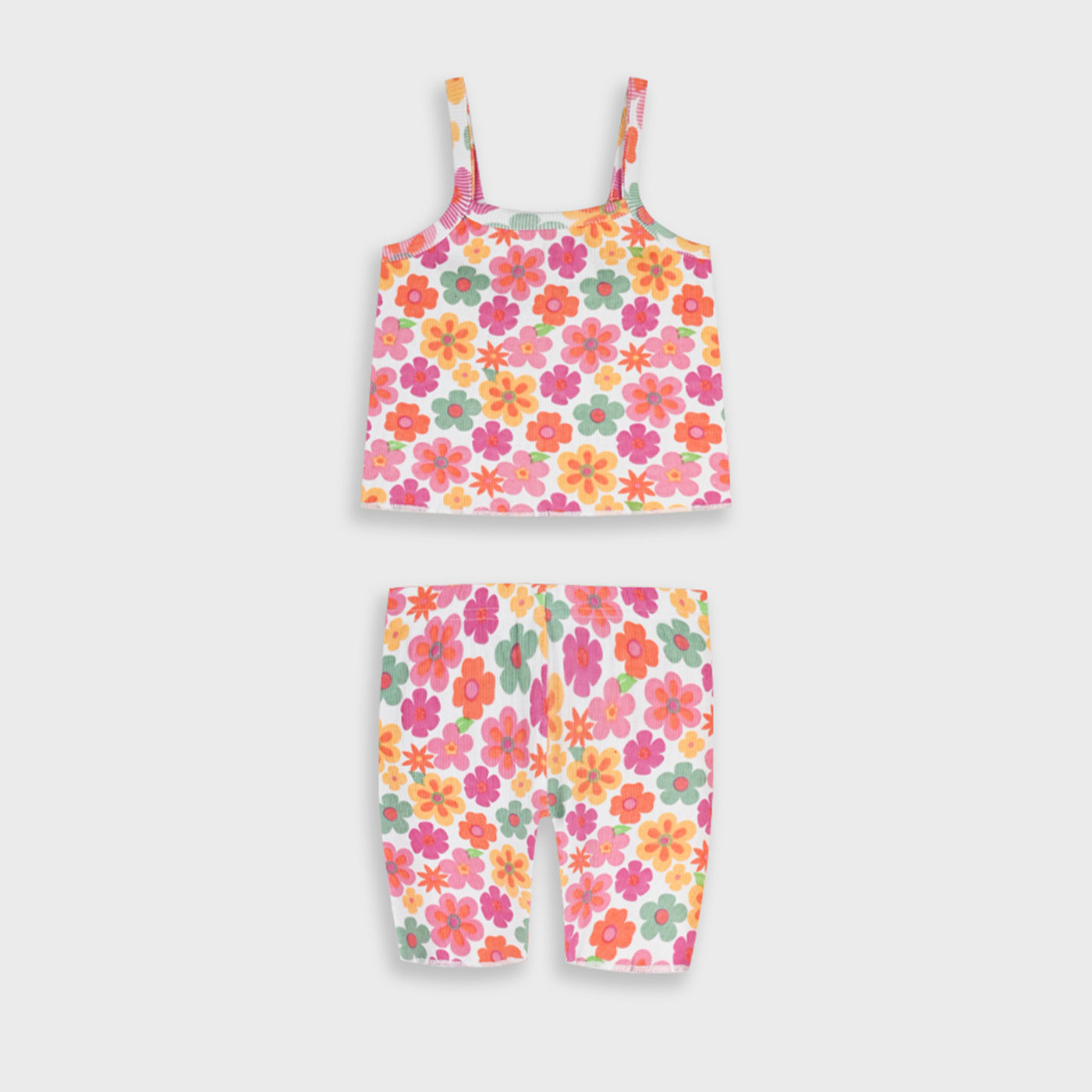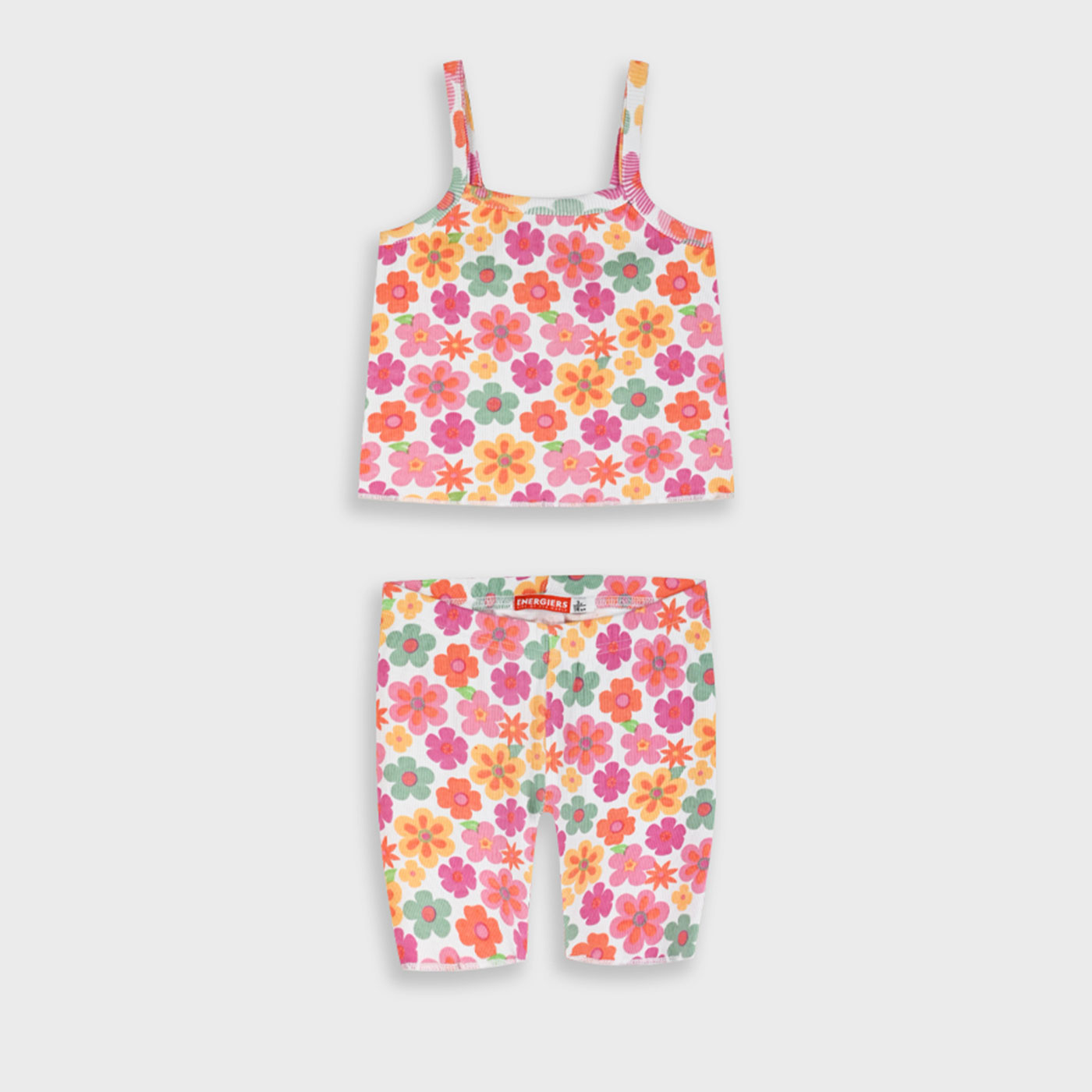 Χαρίστε χρώμα και καλοκαιρινή διάθεση στις εμφανίσεις με το παιδικό σετ με ποδηλατικό κολάν για κορίτσια Energiers σε ροζ φλοράλ σχέδιο, μια χαρούμενη και άνετη επιλογή για κάθε μέρα. Το σετ περιλαμβάνει τιραντάκι τοπ με άνετη εφαρμογή και εντυπωσιακό floral print σε αποχρώσεις ροζ, πορτοκαλί και πράσινου, που αποπνέει φρεσκάδα και παιχνιδιάρικη διάθεση. Το ποδηλατικό κολάν στο ίδιο μοτίβο αγκαλιάζει απαλά το σώμα, προσφέροντας ελευθερία κινήσεων και σταθερή εφαρμογή, ιδανική για παιχνίδι, βόλτες και καλοκαιρινές δραστηριότητες. Κατασκευασμένο από μαλακό, ελαστικό ύφασμα με υψηλή περιεκτικότητα σε βαμβάκι, εξασφαλίζει άνεση και διαπνοή όλη μέρα. Το παιδικό σετ Energiers ροζ φλοράλ αποτελεί ιδανική επιλογή για κορίτσια που αγαπούν τα ζωηρά χρώματα και τα λουλουδάτα σχέδια, συνδυάζοντας στυλ, πρακτικότητα και καλοκαιρινή ανεμελιά σε κάθε εμφάνιση.