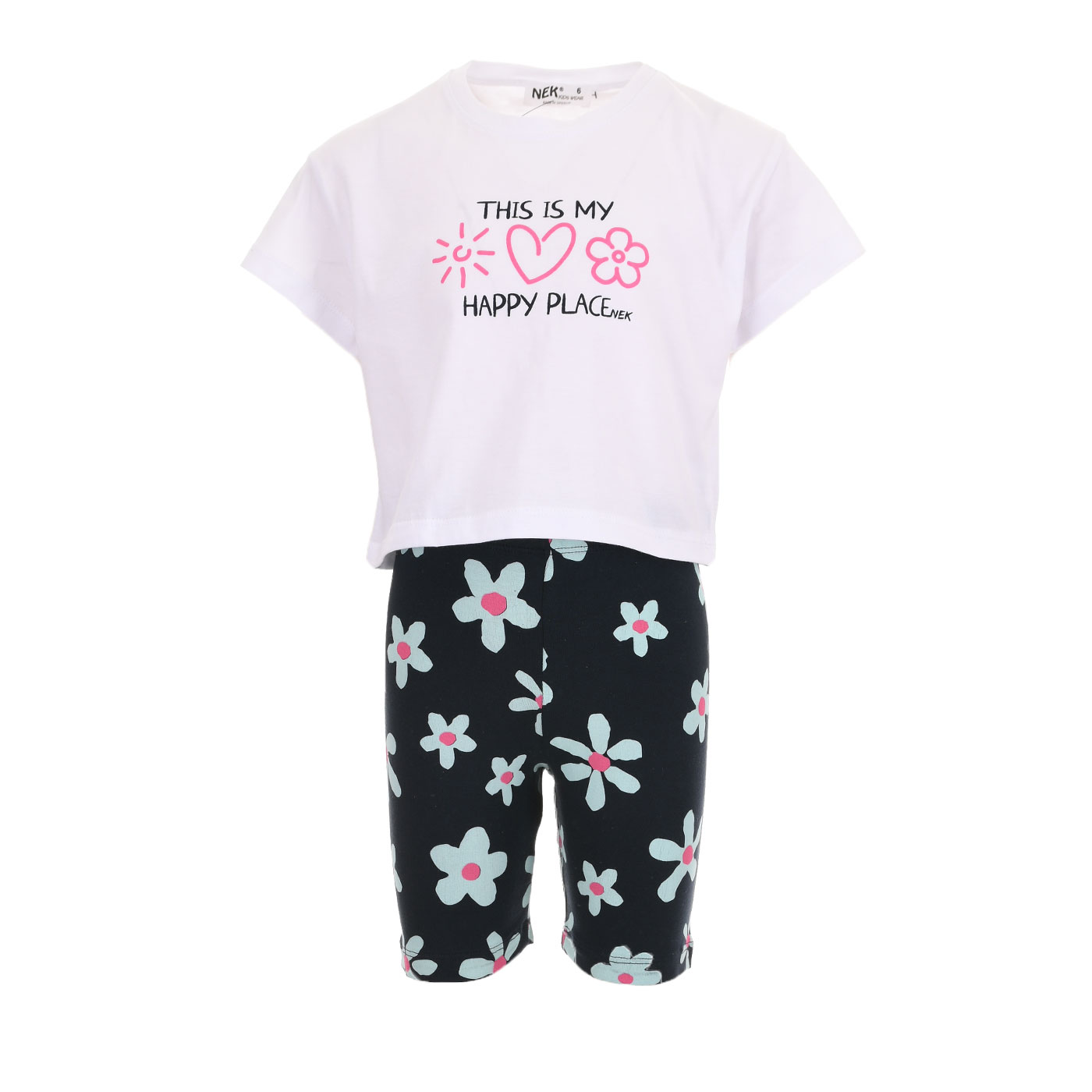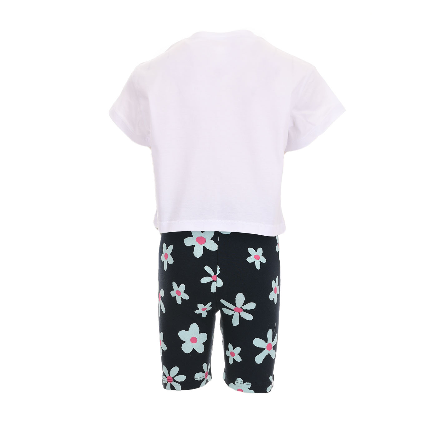 Δώστε άνεση και στυλ στις καθημερινές εμφανίσεις της μικρής σας με αυτό το trendy παιδικό σετ με ποδηλατικό κολάν για κορίτσια από τη Nekidswear σε μοντέρνο συνδυασμό λευκού και μαύρου με floral λεπτομέρειες.