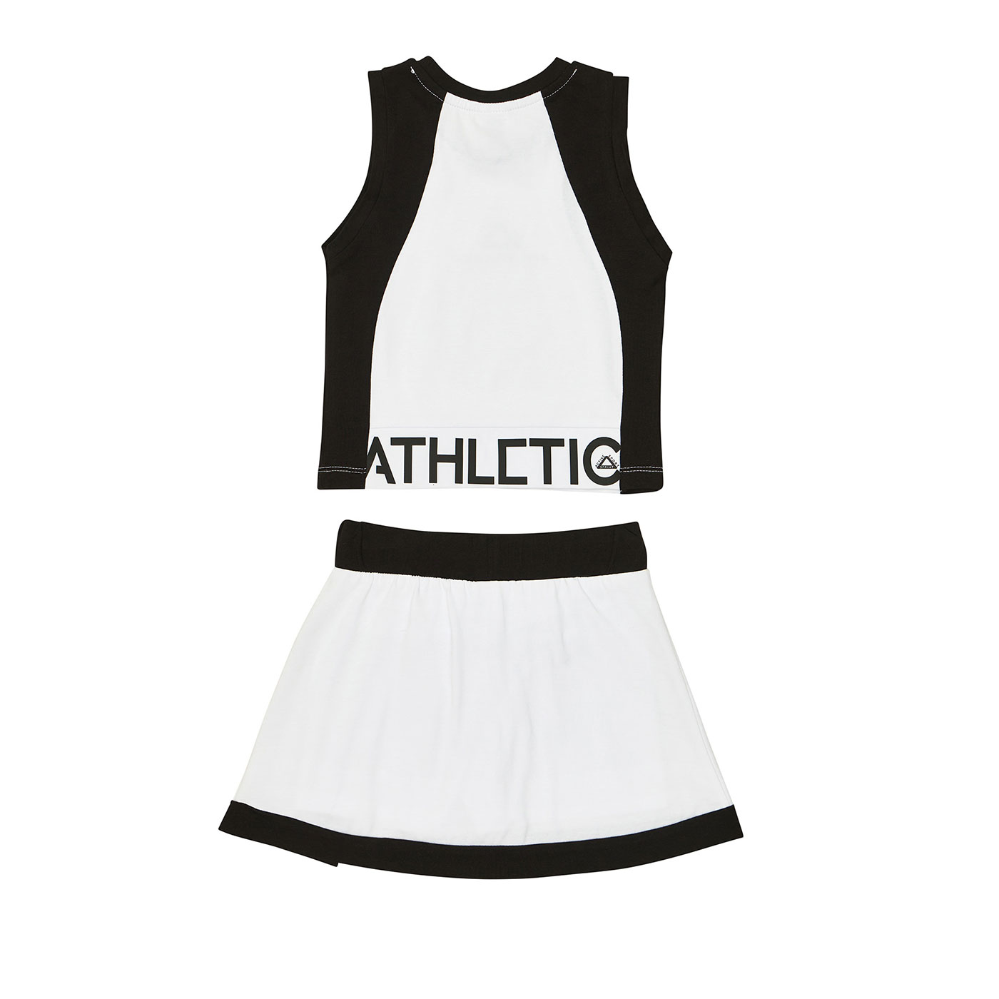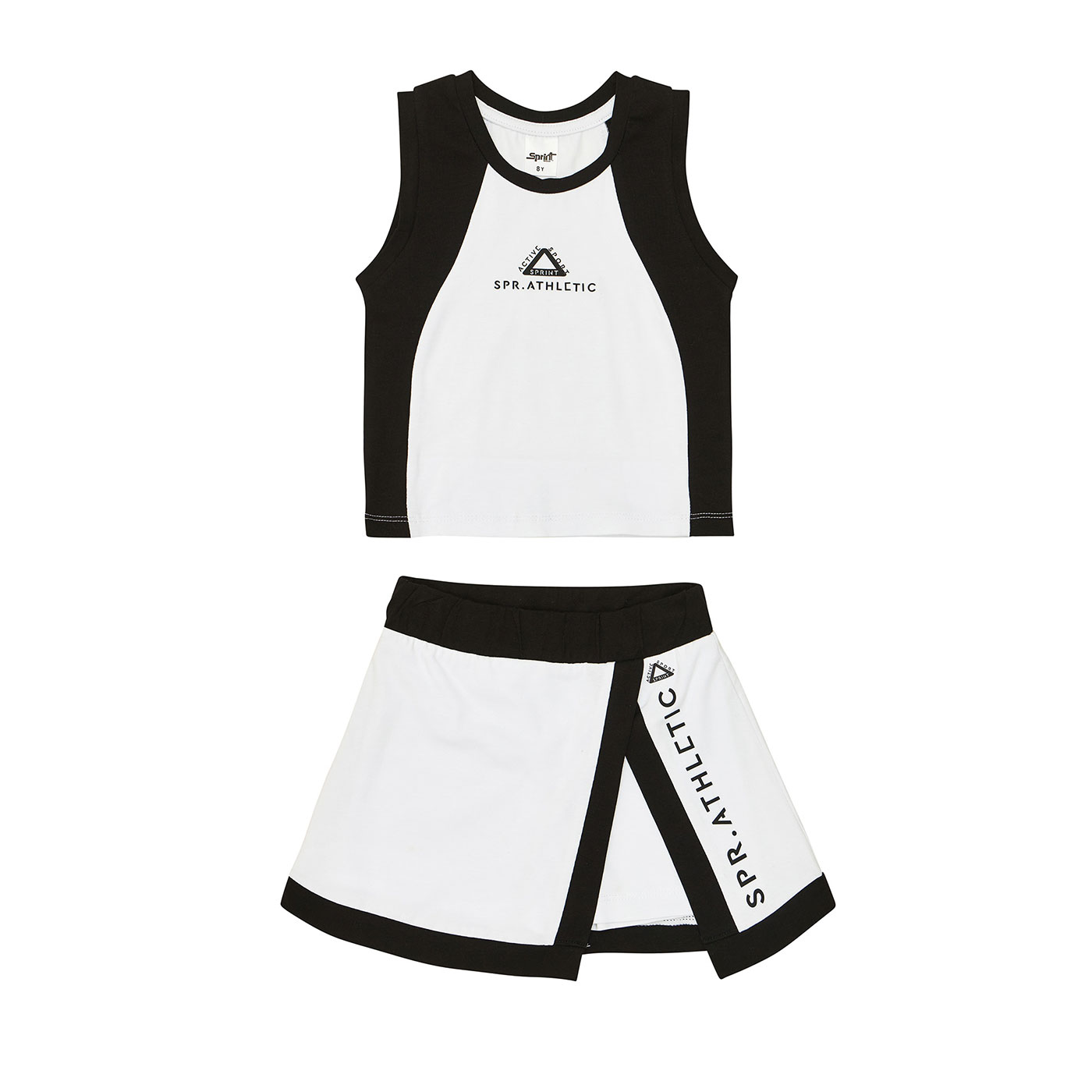 Παιδικό σετ Sprint για κορίτσια σε διαχρονικό λευκό-μαύρο συνδυασμό, ιδανικό για sporty και μοντέρνες εμφανίσεις. Το σετ περιλαμβάνει αμάνικη μπλούζα με αθλητικό design και λογότυπο στο στήθος, καθώς και σορτς-φούστα (skort) που συνδυάζει την άνεση του σορτς με τη θηλυκότητα της φούστας.Κατασκευασμένο από μαλακά και ελαστικά υφάσματα, φιλικά προς το παιδικό δέρμα, προσφέρει δροσερή αίσθηση και ελευθερία κινήσεων όλη μέρα. Η ελαστική μέση εξασφαλίζει σταθερή και άνετη εφαρμογή χωρίς πίεση, ιδανική για παιχνίδι, αθλητικές δραστηριότητες και βόλτες.Το minimal αλλά δυναμικό χρωματικό δίδυμο λευκού-μαύρου κάνει το σετ εύκολο στους συνδυασμούς και κατάλληλο για κάθε περίσταση, από το σχολείο μέχρι τις εξόδους.