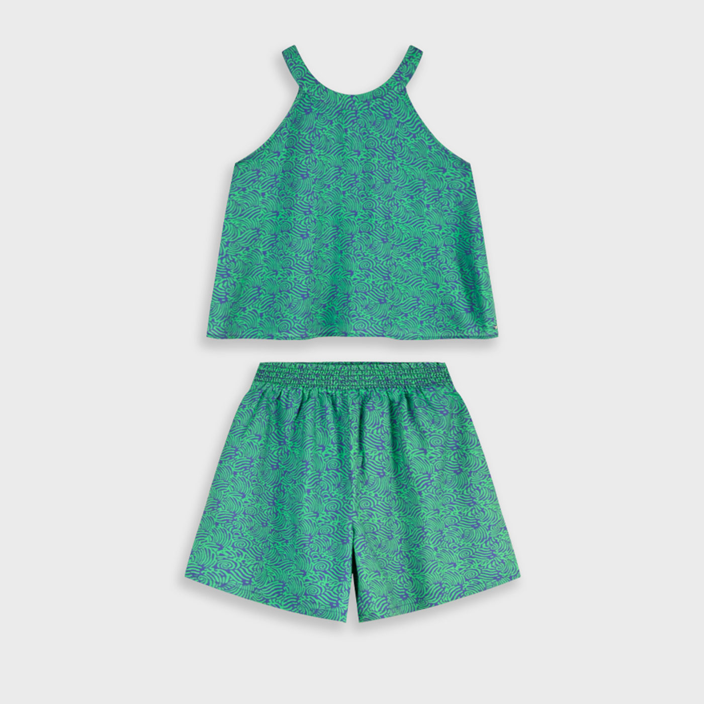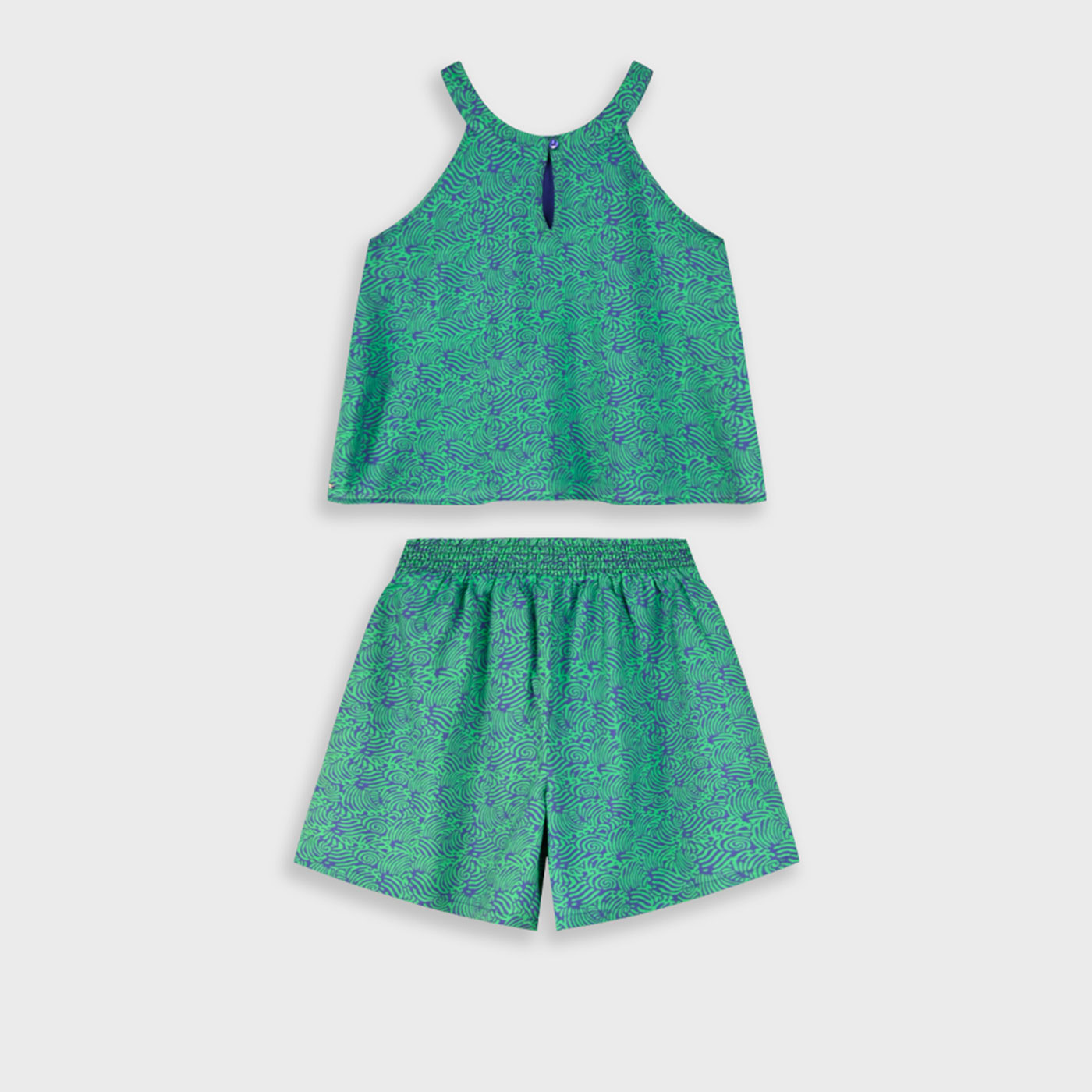 Ένα δροσερό και χαρούμενο σύνολο για τις καλοκαιρινές εμφανίσεις! Το παιδικό σετ Energiers για κορίτσια σε πράσινη απόχρωση αποτελείται από αμάνικο τοπ και σορτς, συνδυάζοντας άνεση, ελευθερία κινήσεων και μοντέρνο στυλ.