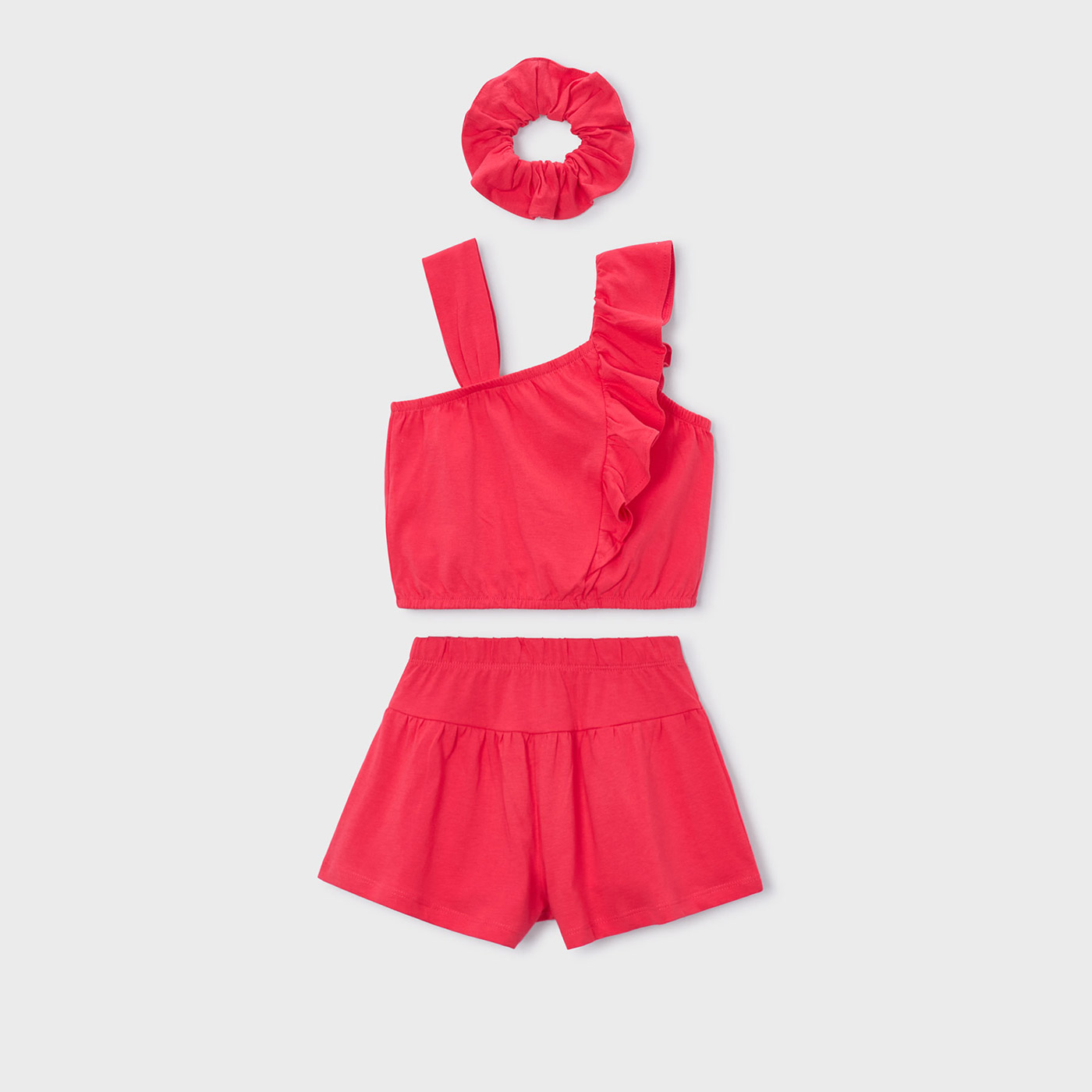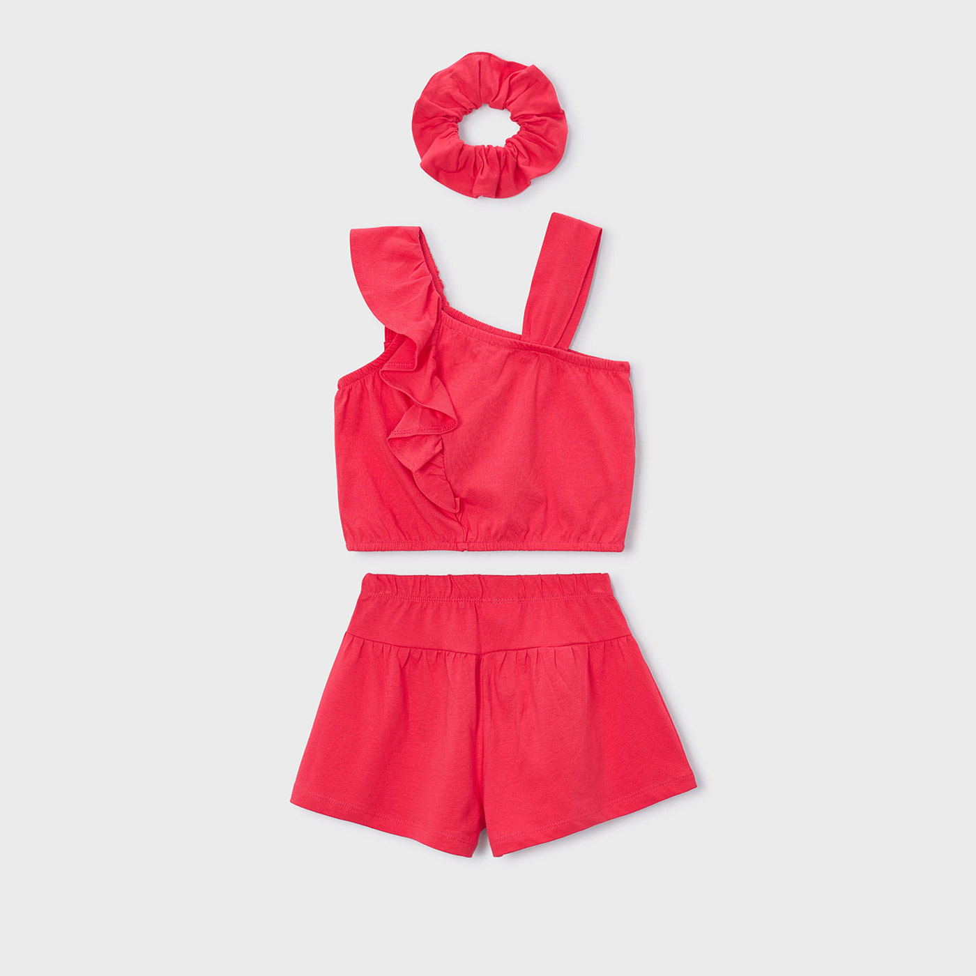 Το παιδικό σετ Mayoral για κορίτσια (3 τεμαχίων) είναι μια χαρούμενη και καλοκαιρινή επιλογή που συνδυάζει άνεση, στυλ και παιχνιδιάρικη διάθεση. Σε ζωηρό κόκκινο χρώμα , είναι ιδανικό για τις ζεστές ημέρες και τις καλοκαιρινές εξορμήσεις.Το σετ περιλαμβάνει αμάνικο τοπ με βολάν, σορτς με ελαστική μέση και scrunchie για τα μαλλιά, δημιουργώντας ένα ολοκληρωμένο και καλαίσθητο σύνολο. Το μαλακό και δροσερό ύφασμα προσφέρει άνετη εφαρμογή, ενώ η άνετη γραμμή επιτρέπει ελευθερία κινήσεων στο παιχνίδι και τη βόλτα.Ιδανικό για καθημερινή χρήση, διακοπές ή καλοκαιρινές εμφανίσεις, αποτελεί μια πρακτική αλλά και στιλάτη επιλογή για κάθε μικρή fashionista.