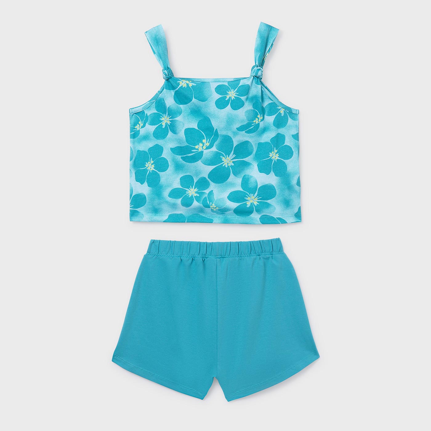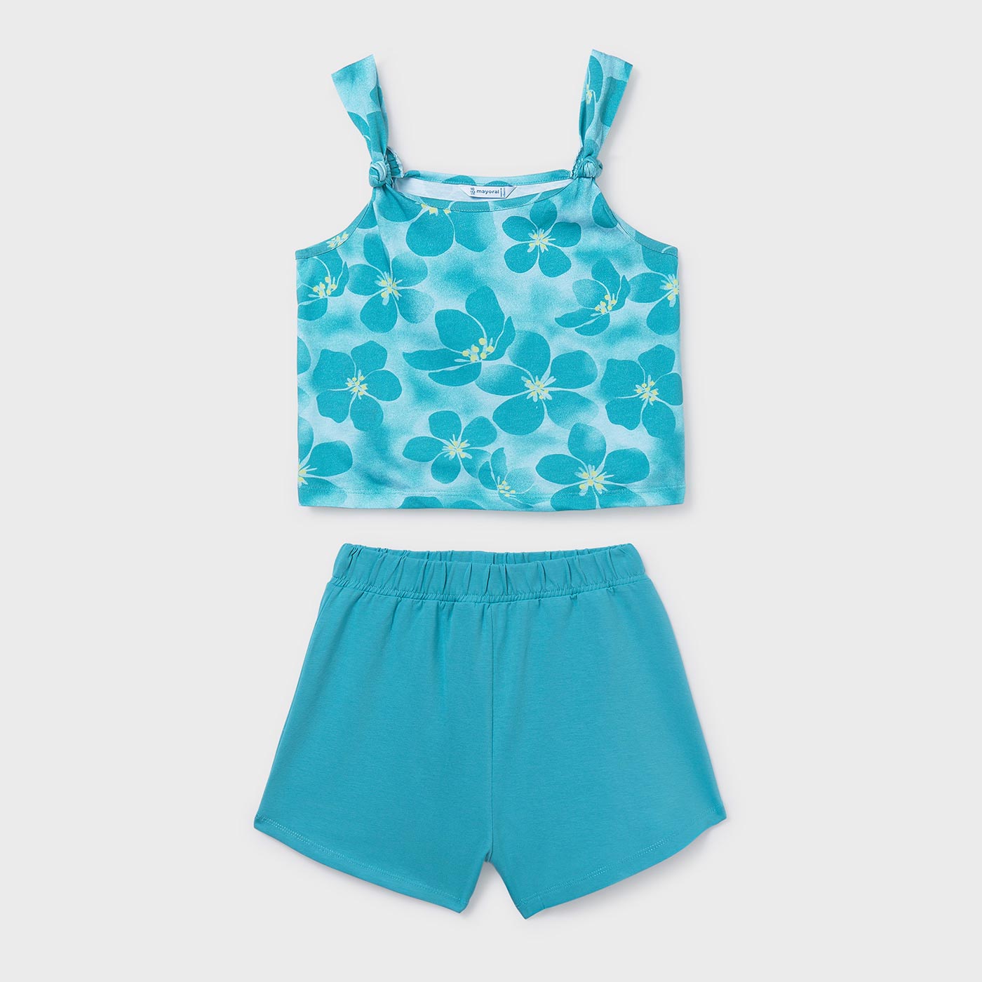 Δροσερό, φωτεινό και γεμάτο καλοκαιρινή διάθεση, αυτό το παιδικό σετ με σορτς για κορίτσια Mayoral σε γαλάζια απόχρωση με φλοράλ μοτίβο είναι ιδανικό για τις ζεστές ημέρες του καλοκαιριού.Το σετ αποτελείται από αμάνικο τοπ με τιράντες που δένουν, προσφέροντας παιχνιδιάρικο στιλ και άνετη εφαρμογή, καθώς και από μονόχρωμο γαλάζιο σορτς με ελαστική μέση για ελευθερία κινήσεων. Το φλοράλ σχέδιο στο τοπ χαρίζει φρεσκάδα και κοριτσίστικη αισθητική, ενώ το απαλό και ελαφρύ ύφασμα το καθιστά ιδανικό για όλη τη μέρα.Ιδανικό για διακοπές, βόλτες, παιχνίδι και καθημερινές εμφανίσεις, αυτό το σετ συνδυάζει άνεση, ποιότητα και καλοκαιρινό στιλ με την υπογραφή της Mayoral.