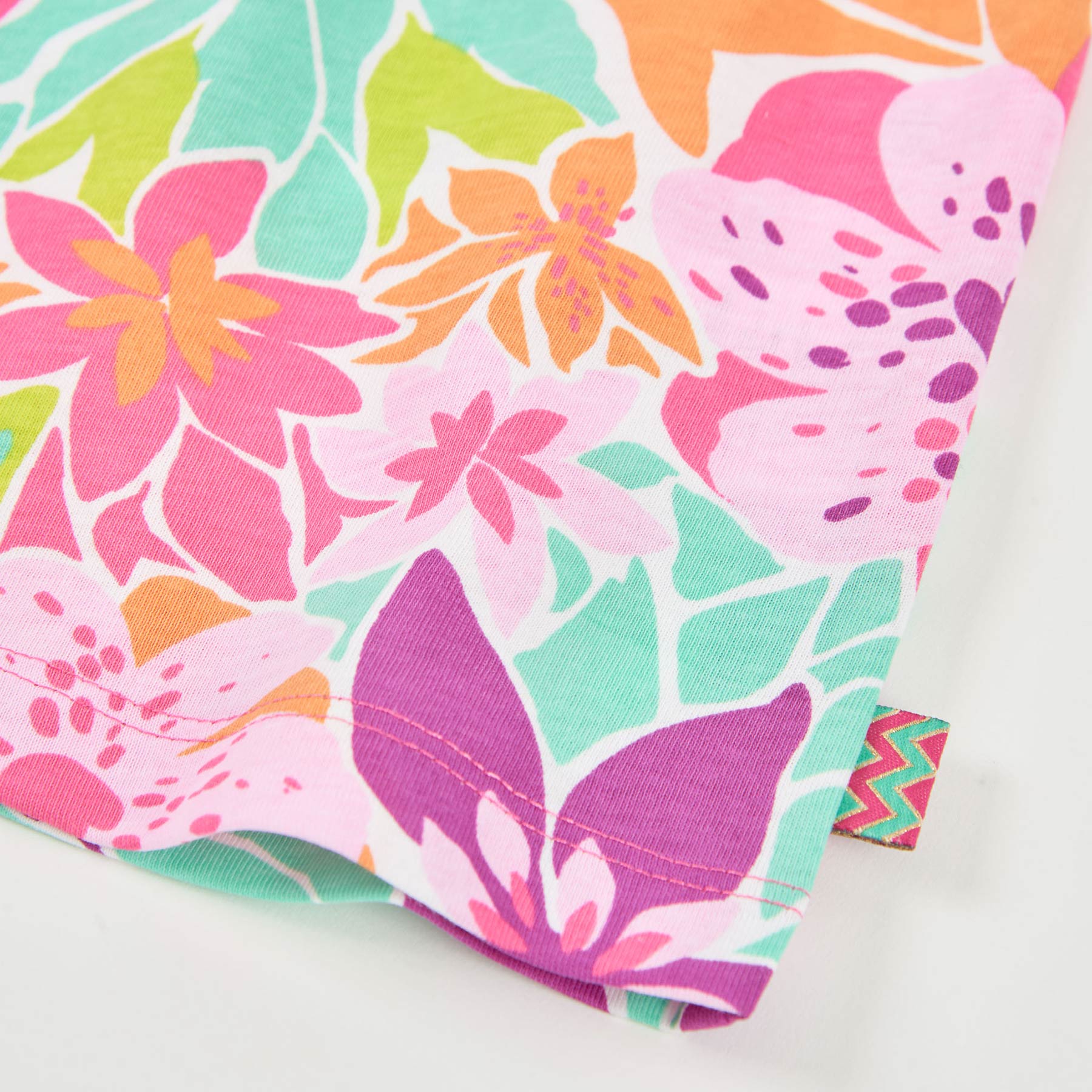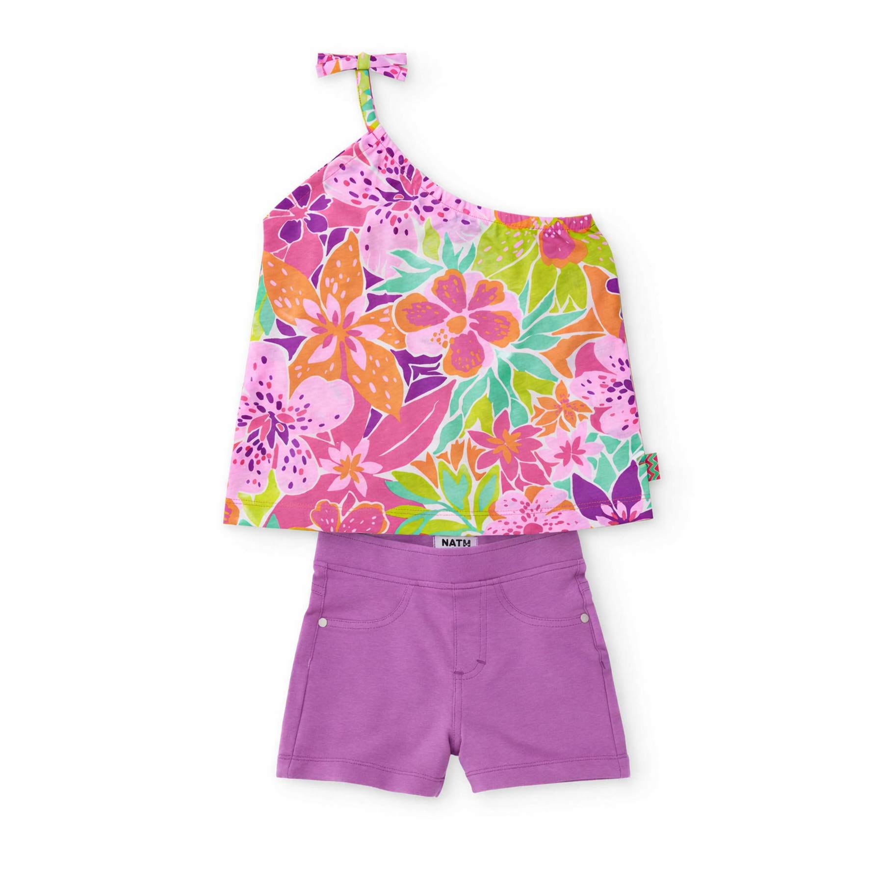 Χαρίστε στη μικρή σας ένα εκρηκτικό καλοκαιρινό look με το παιδικό σετ Nathkids σε εντυπωσιακό φλοράλ σχέδιο και μωβ σορτς. Ένα σύνολο γεμάτο χρώμα, φρεσκάδα και παιχνιδιάρικη διάθεση, ιδανικό για τις πιο χαρούμενες καλοκαιρινές στιγμές.